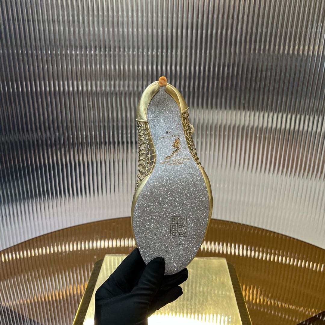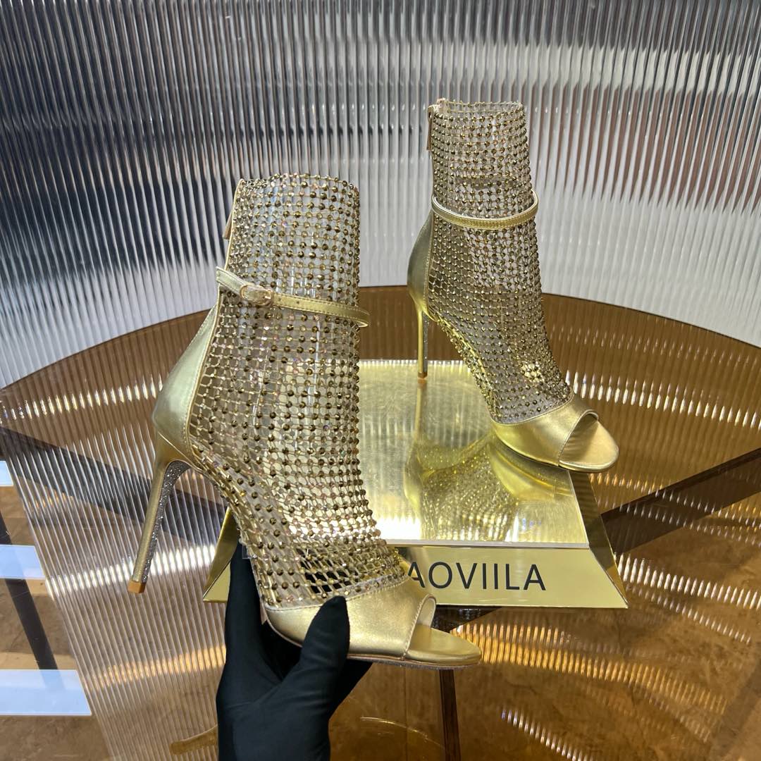 RC 25C High Heel Short Boots Mid-Tube Open-Toe Sandals Gold Sheepskin 174957