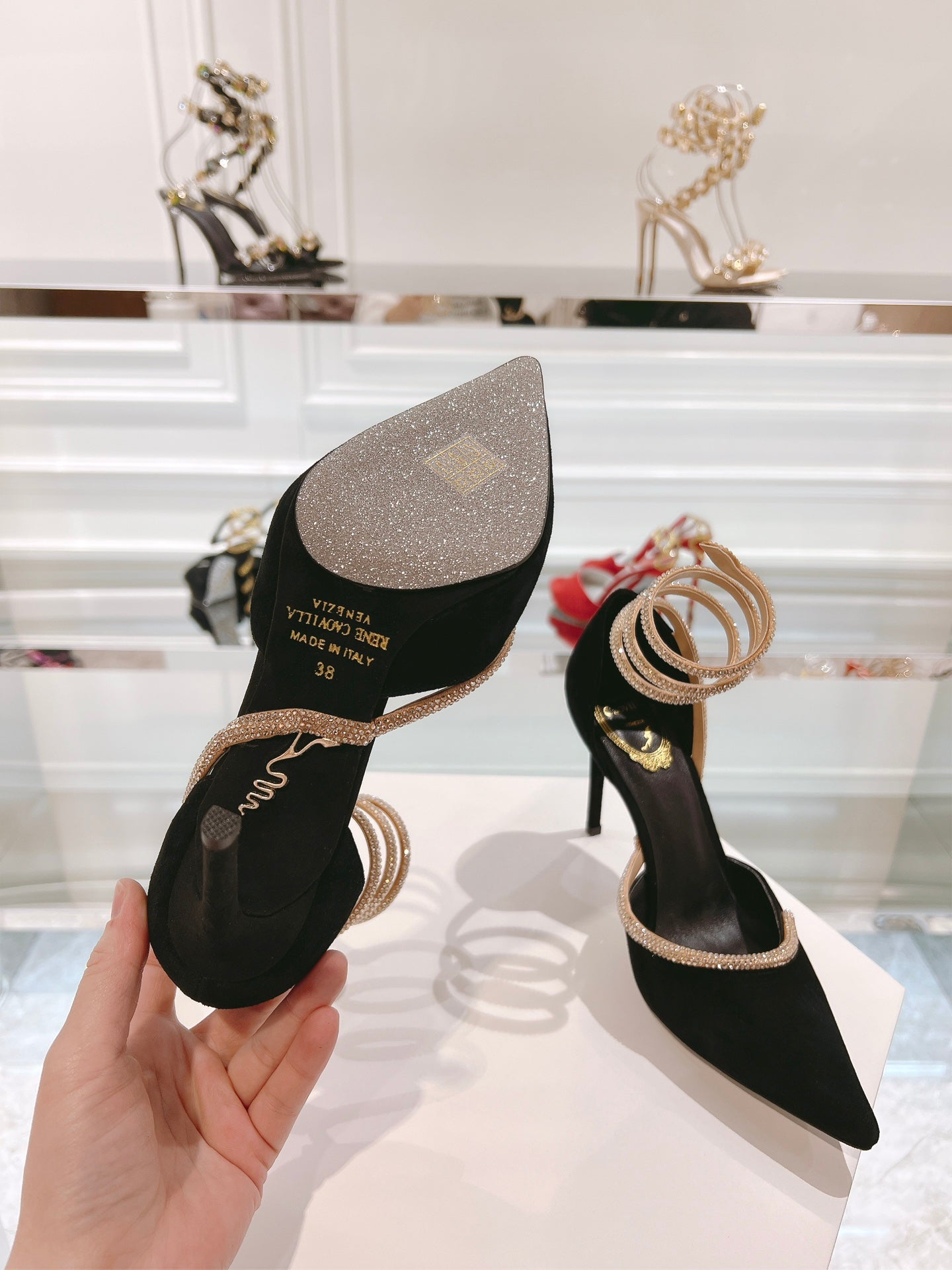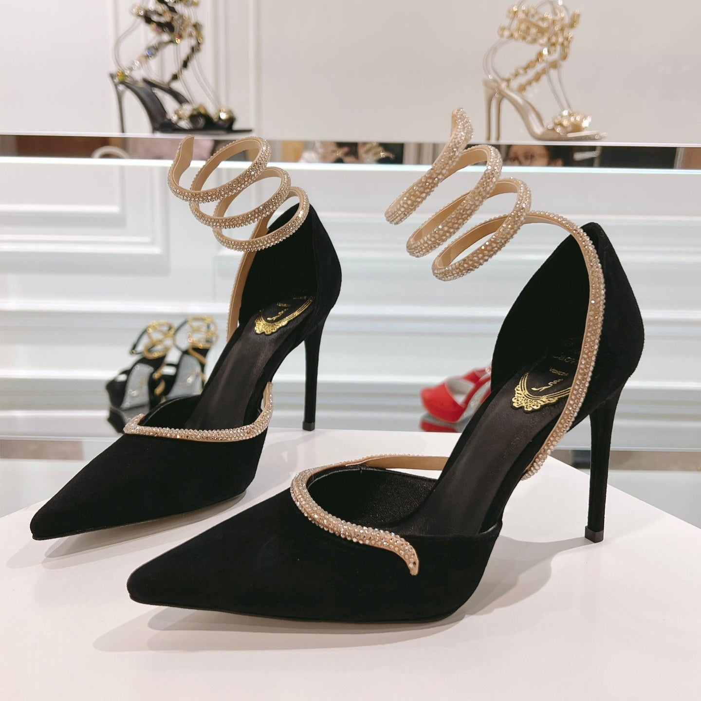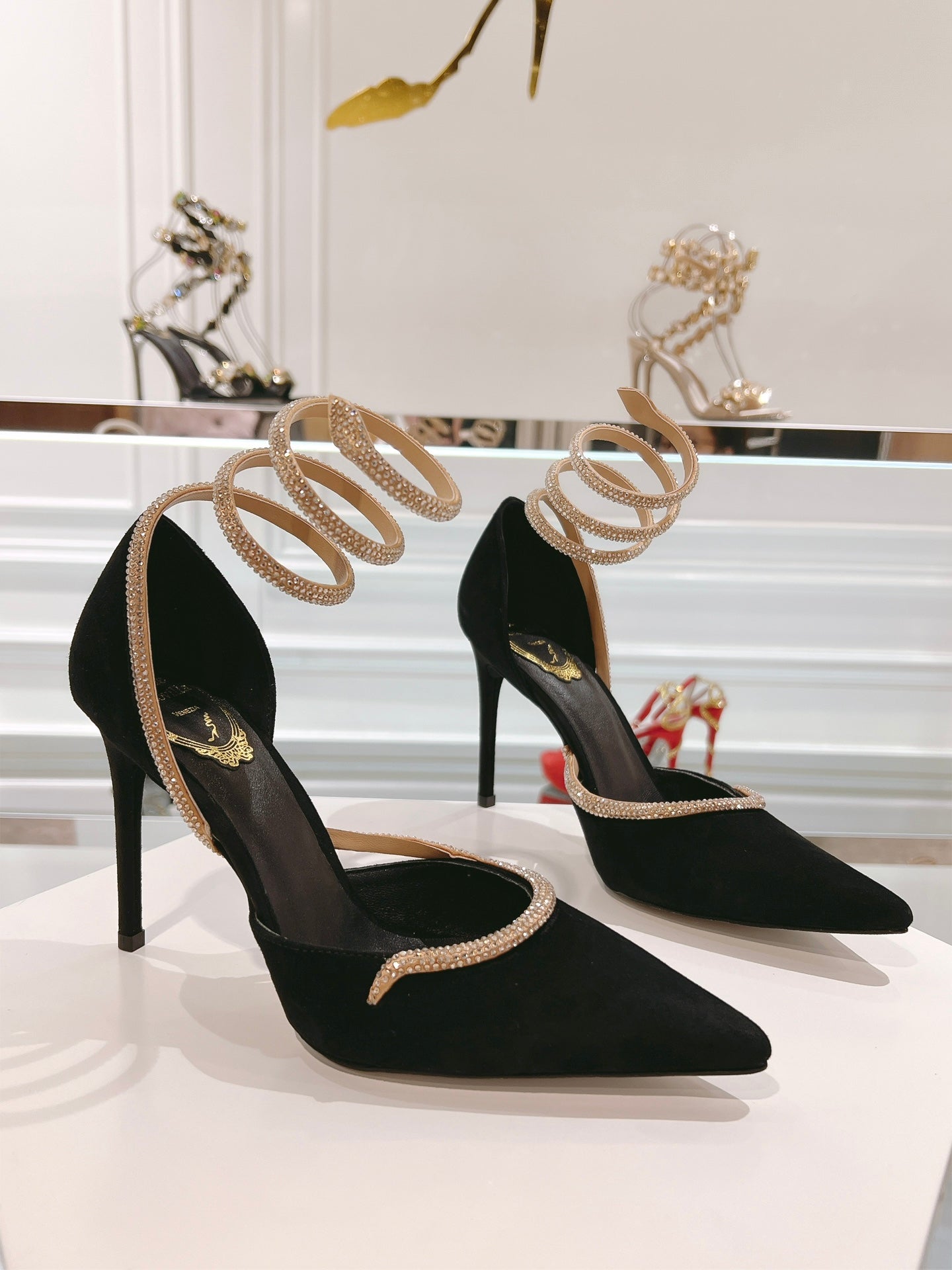 RC 25C Scarpin Black Gold Imported Velvet Swarovski Crystal 339483