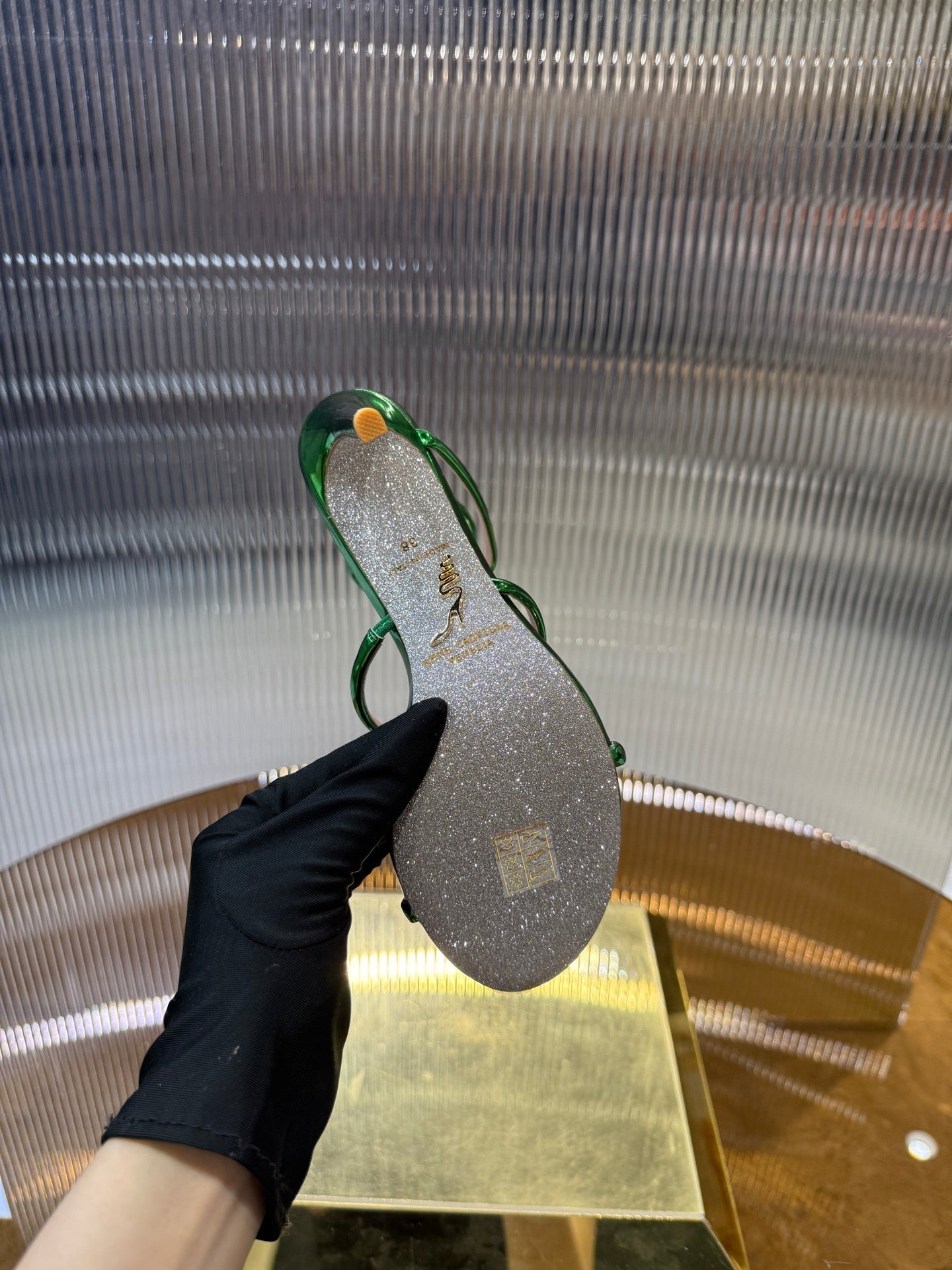 RC 25C Snake-Shaped Sandals 9.5cm Green Sheepskin 310627