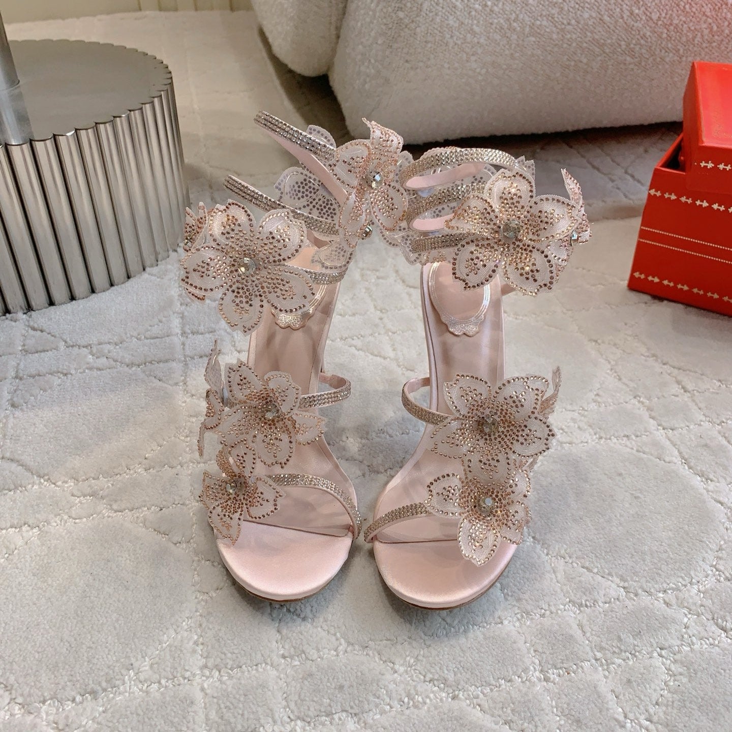 RC Flower Sandals Pink Nude Sheepskin Rhinestones 328466