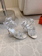 RC Flower Sandals Silver Sheepskin Rhinestones 328468