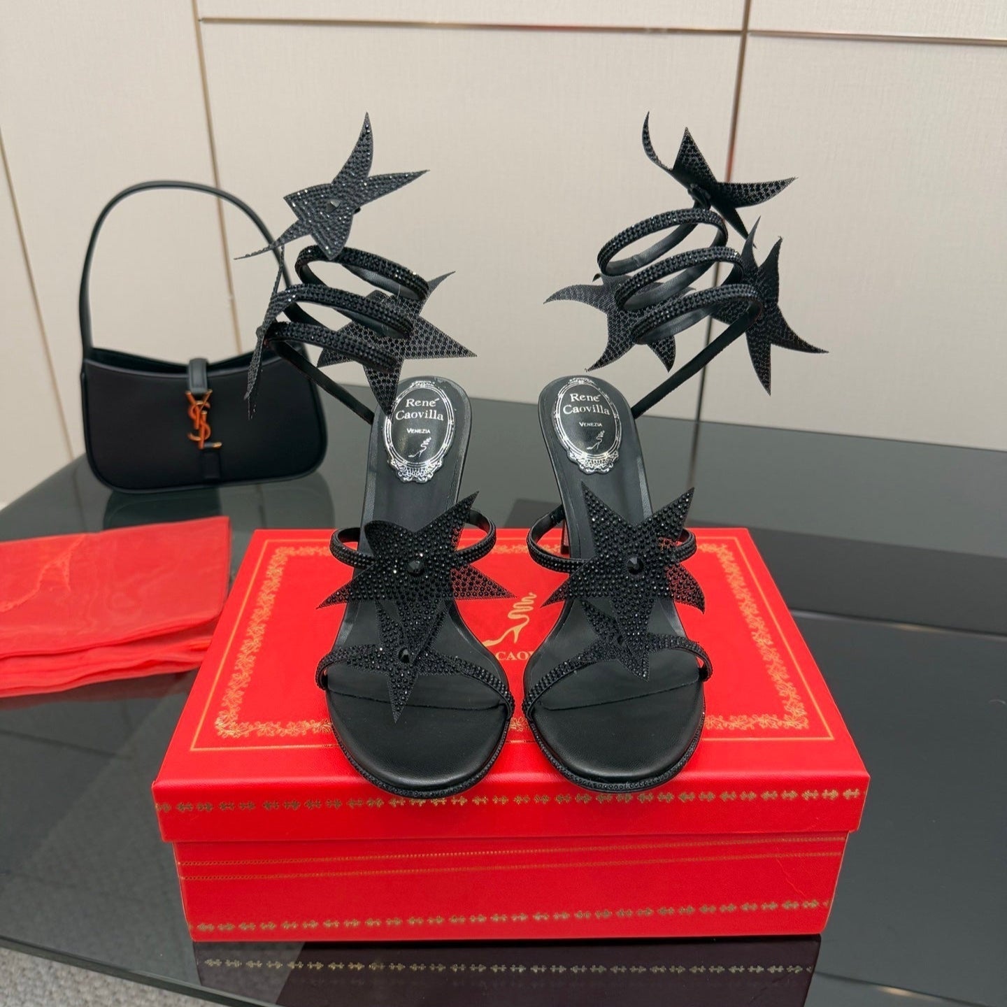 RC Sandals 9.5cm Black Rhinestone Silk 302581