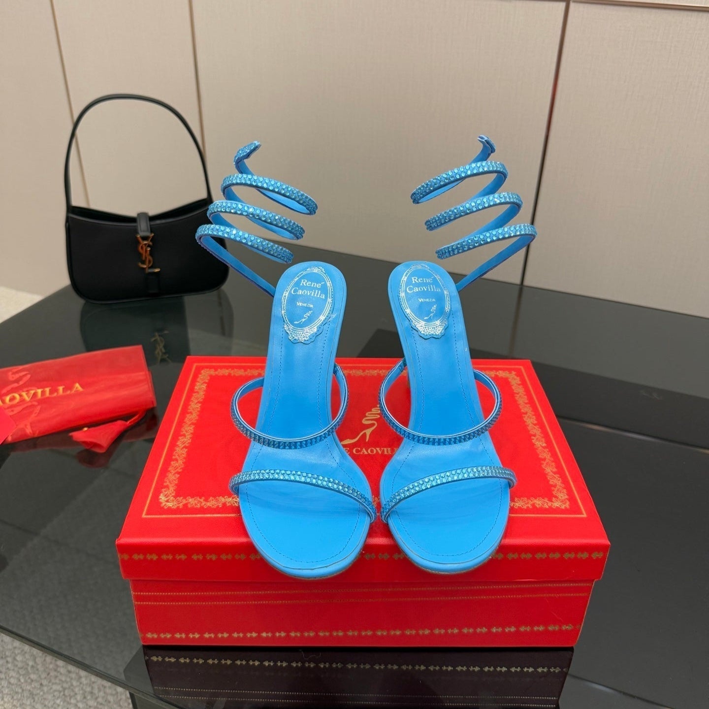 RC Sandals 9.5cm Blue Silk Creole Crystal Diamond 302603