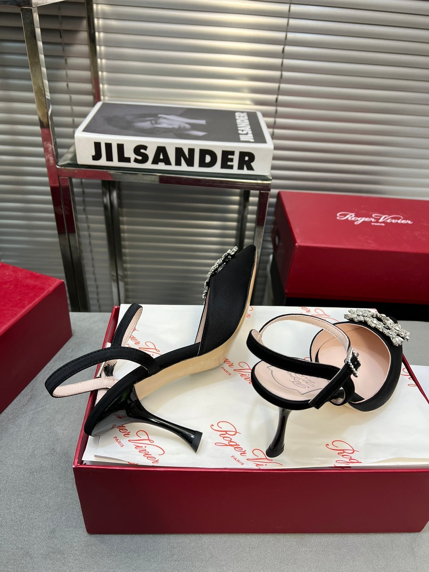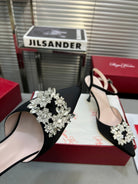 Flower Strass Buckle Slingback Pump 90 Black Satin