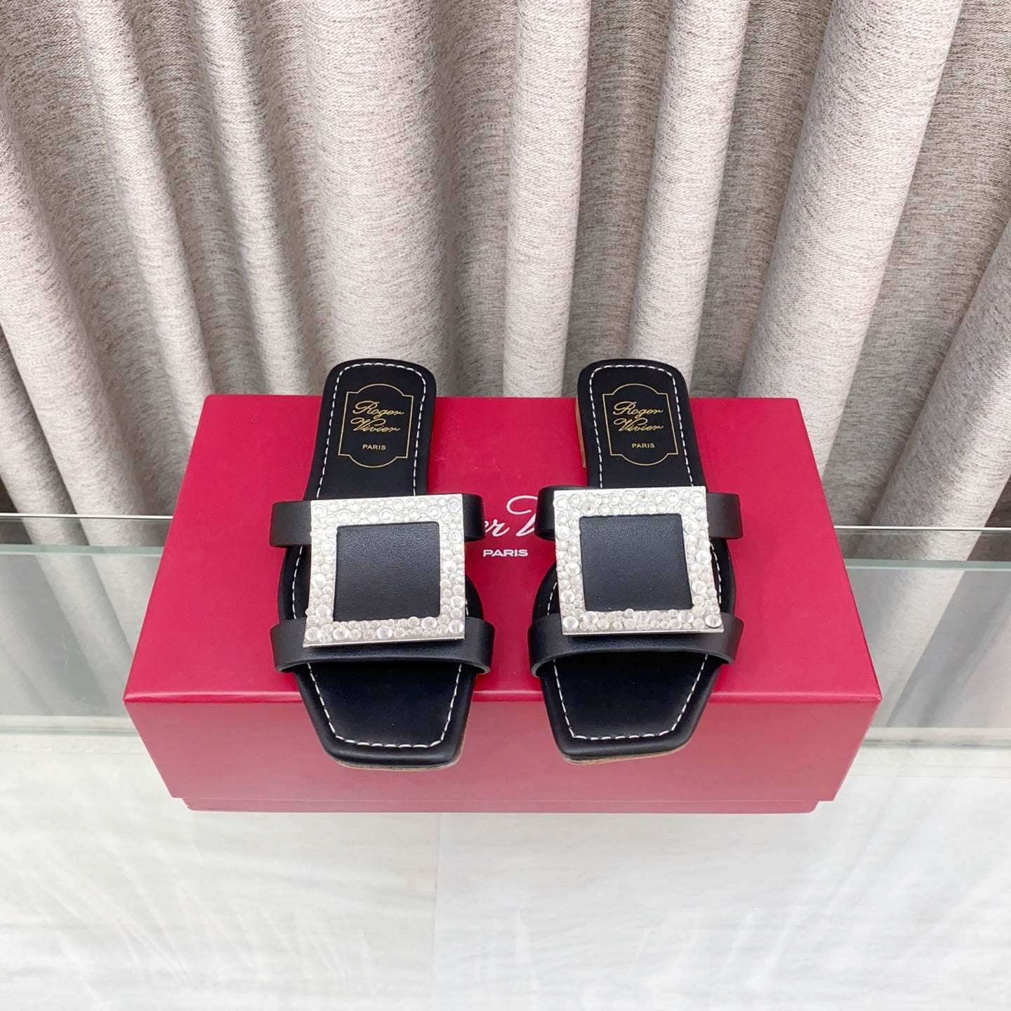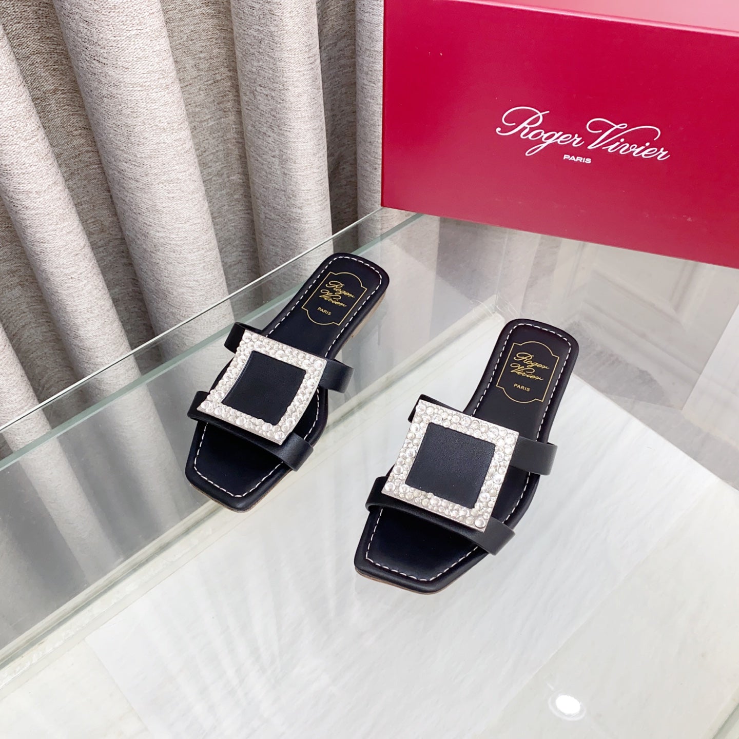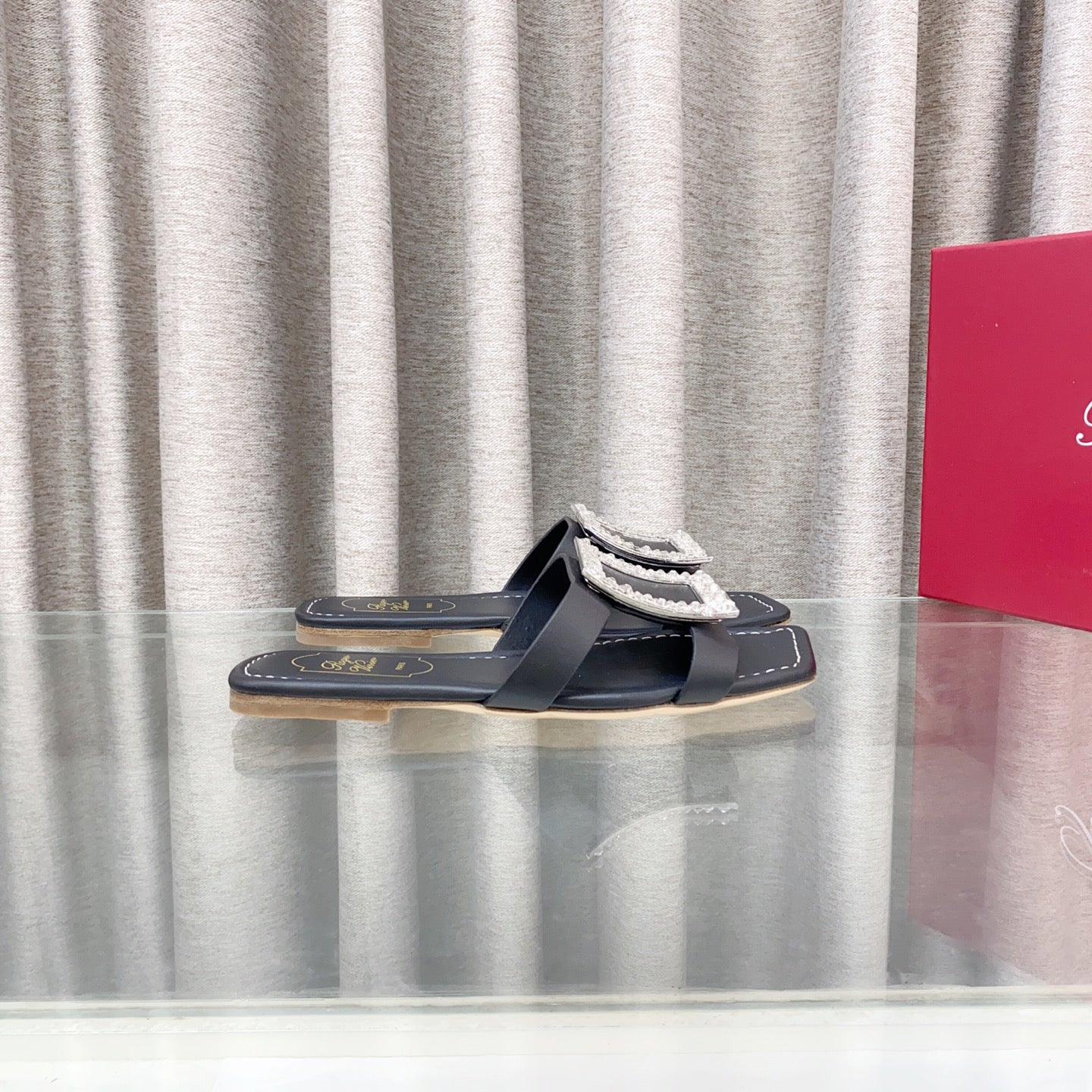 Viv 25 Diamond Flat Slippers Black Cowhide 283038