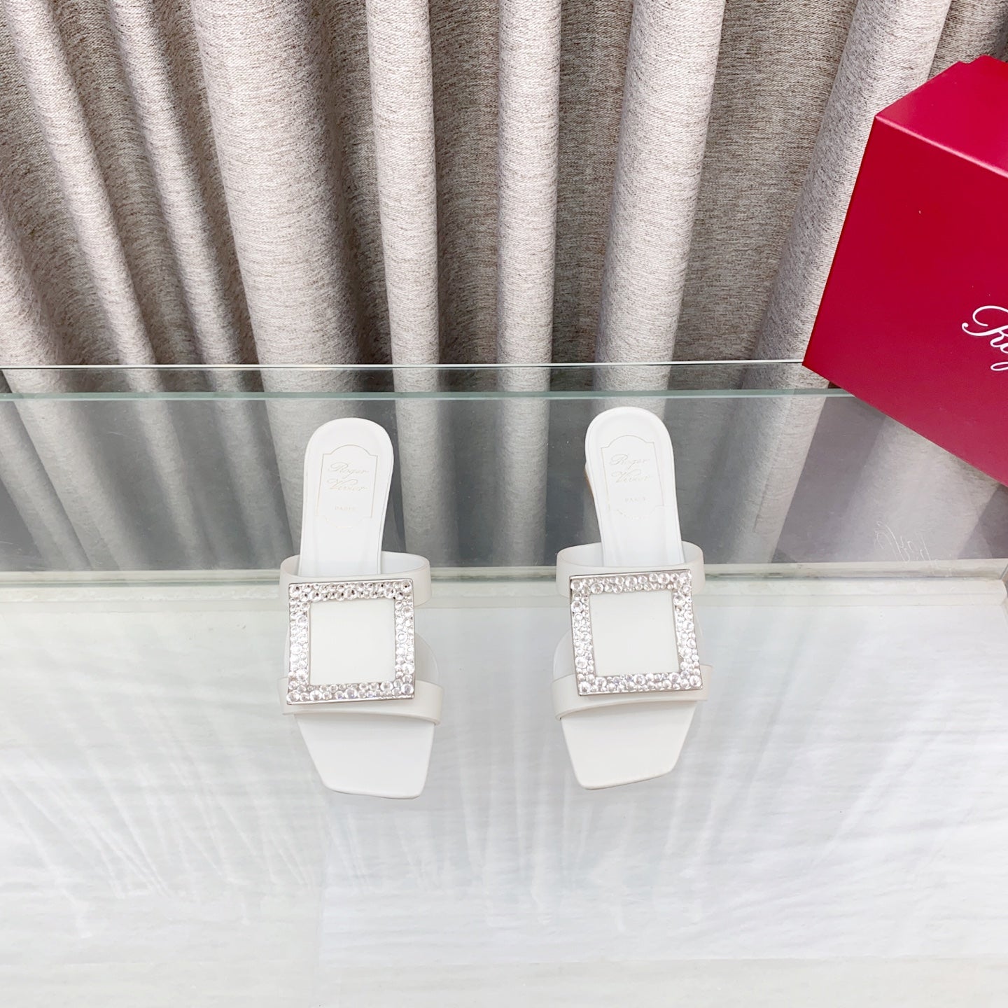 Viv 25 Diamond Mid Heel Slides White Cowhide 283040