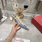 Viv 25 Flower Slingback Blue Italian Leather 300787