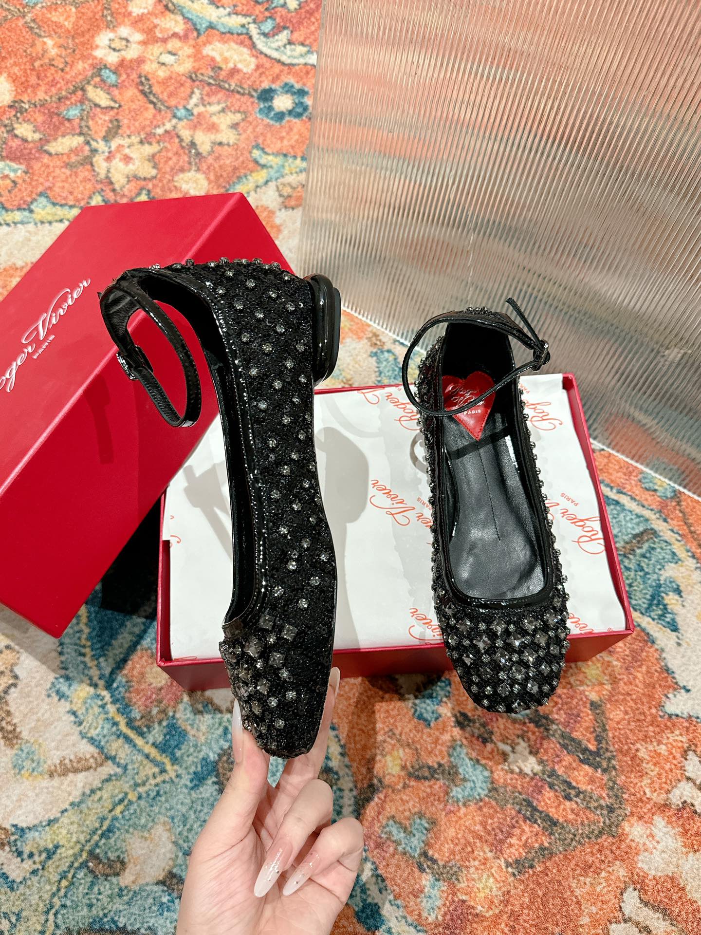Viv 25 Mary Jane Flats Black Fabric Rhinestone 247125