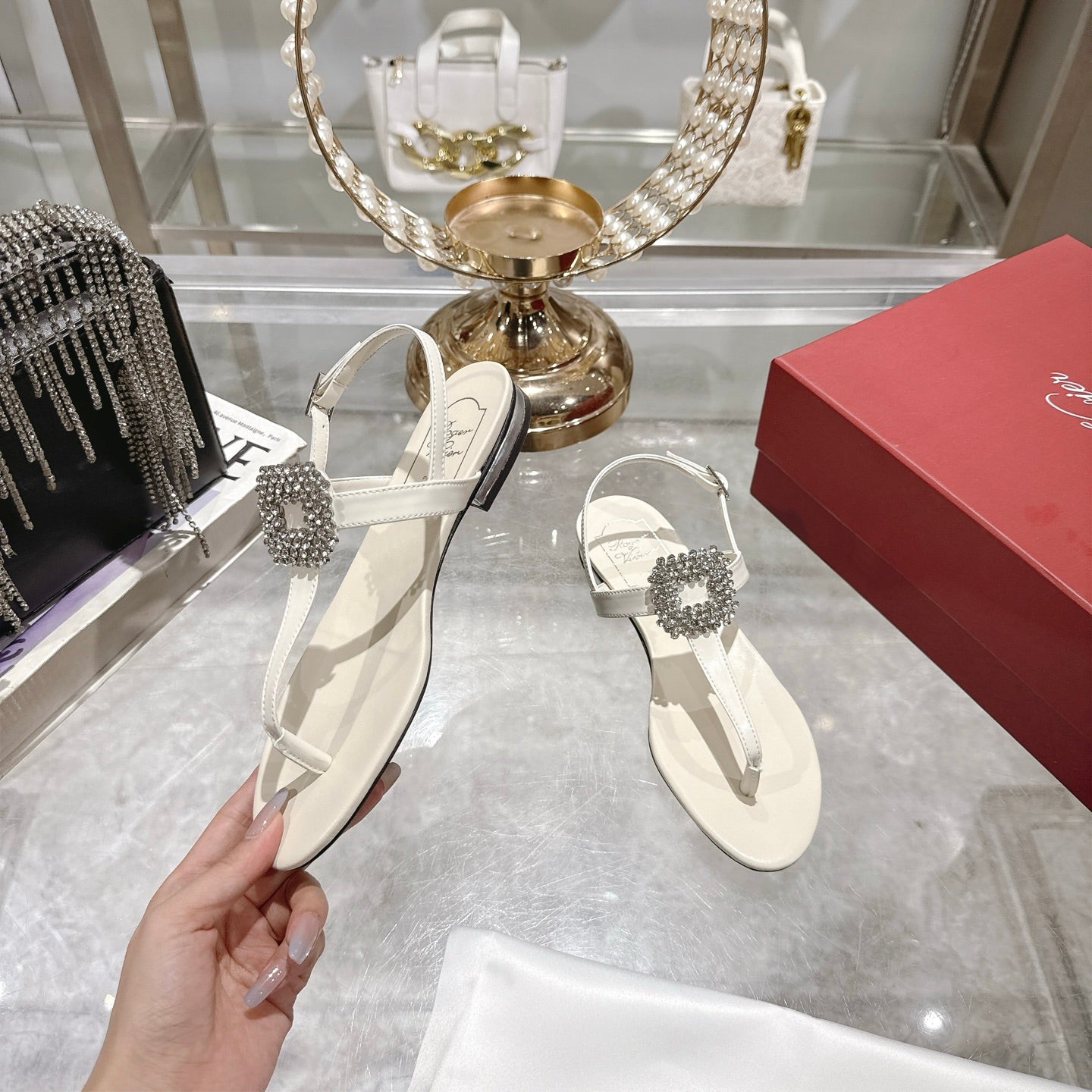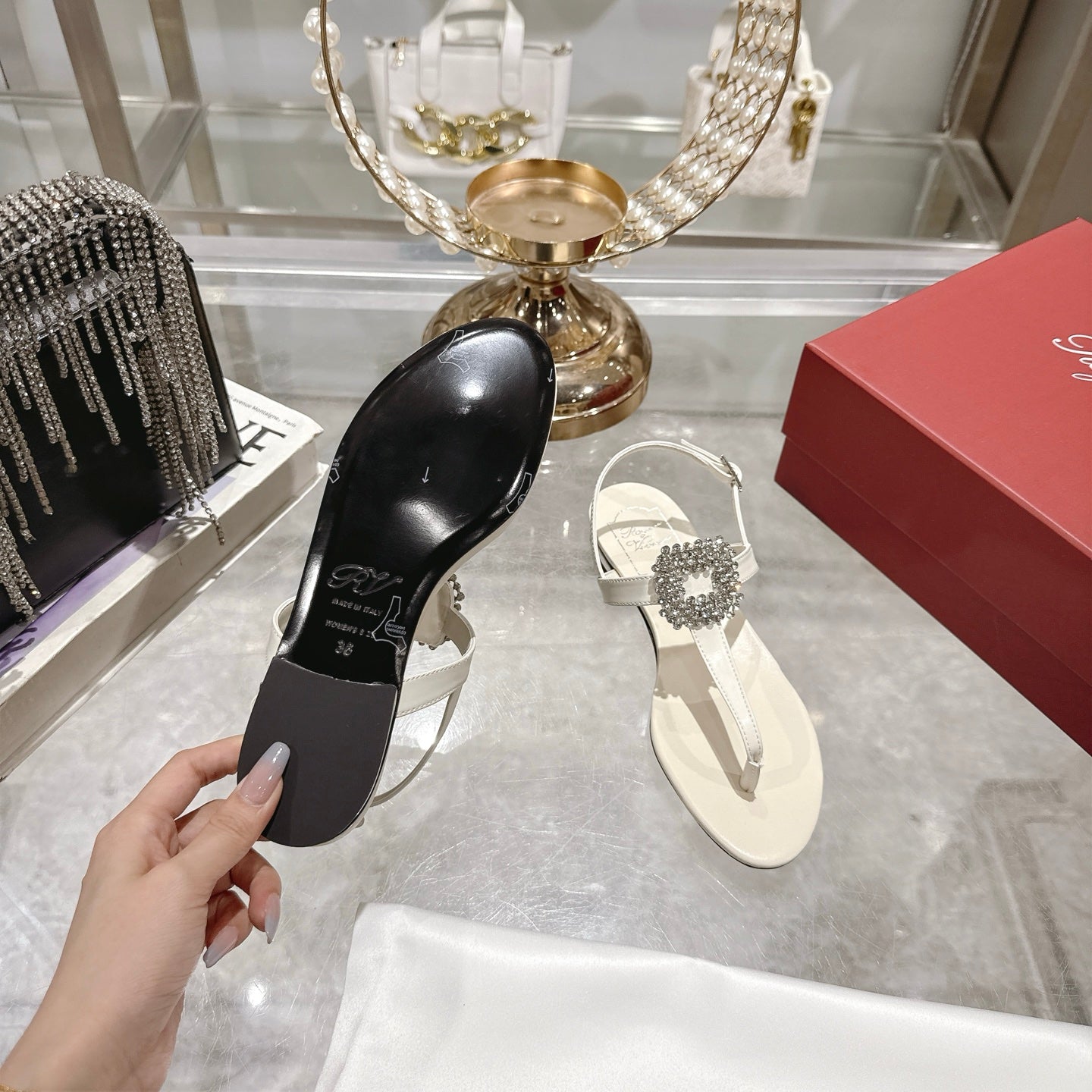 Viv 25 Thong Sandals White Cowhide 334693