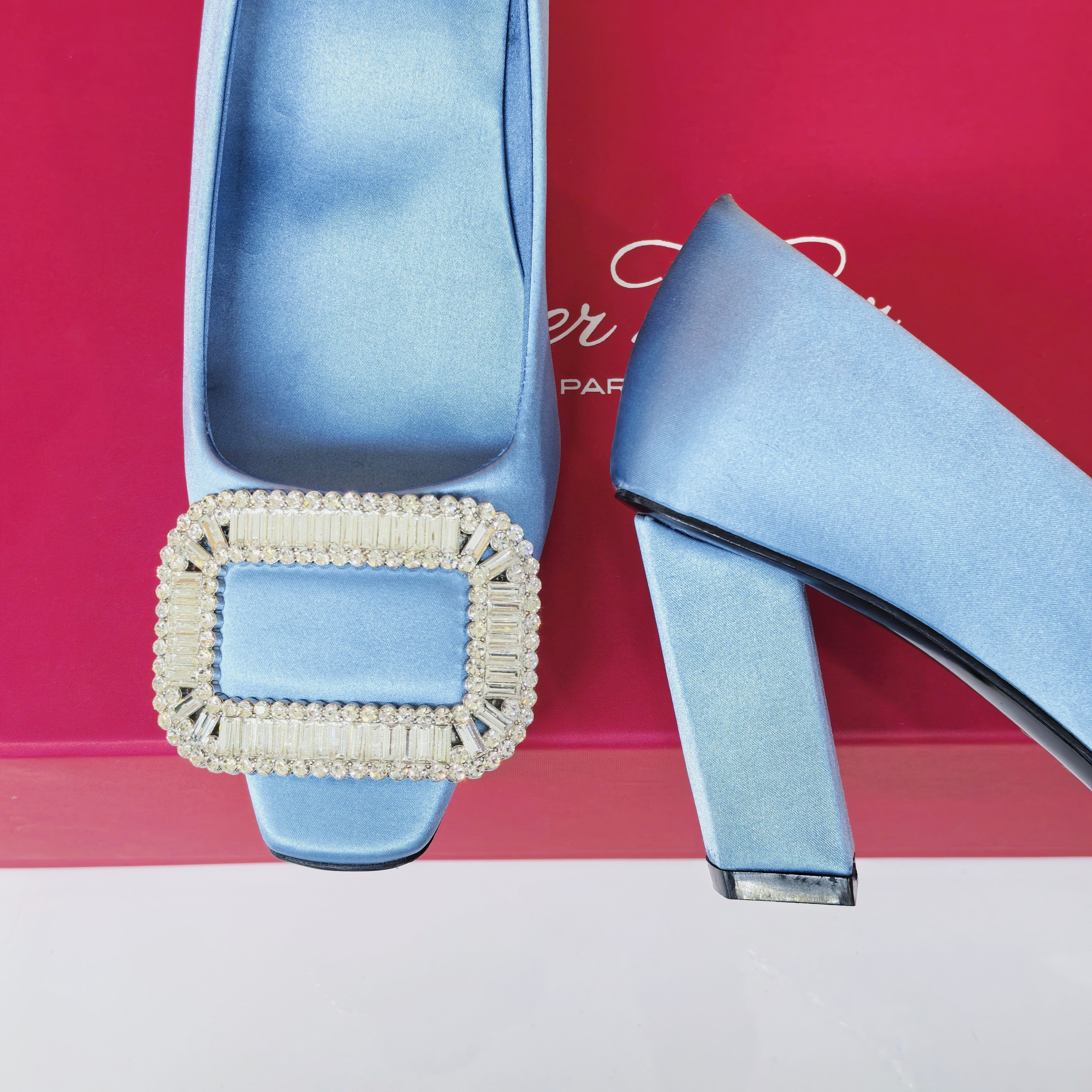 Viv Button Pumps Mist Blue Silk 247406