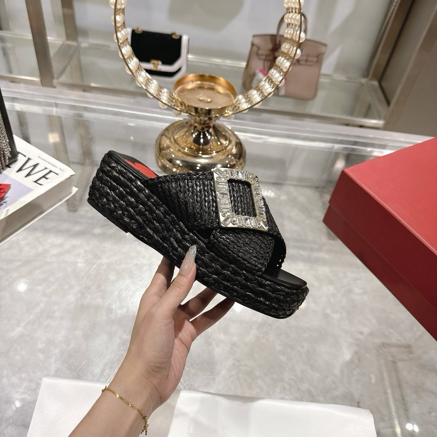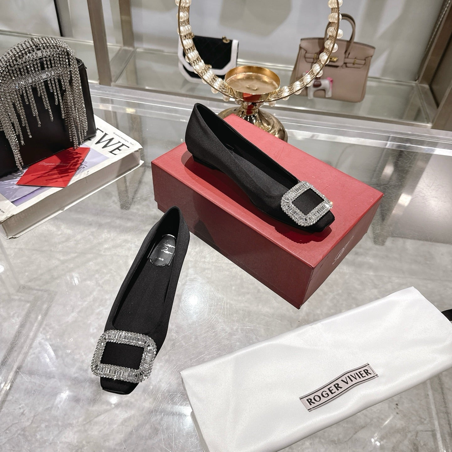 Viv 25 Diamond Flat Slippers Black Cowhide 283038