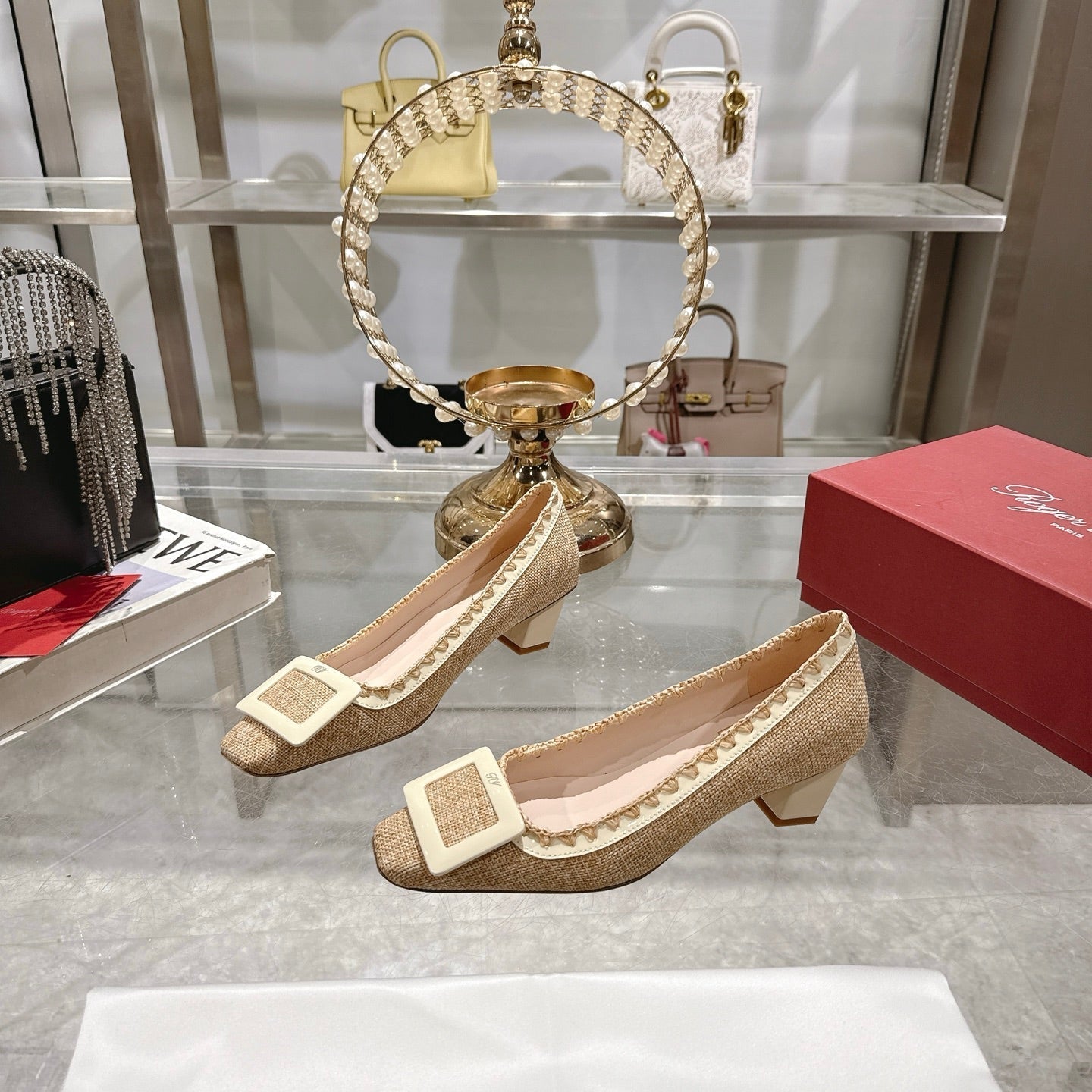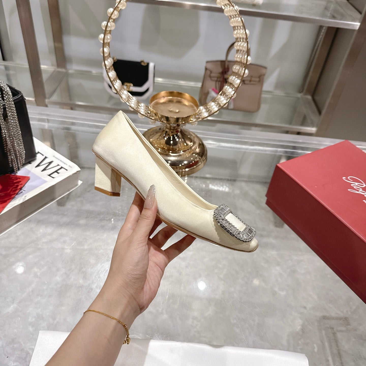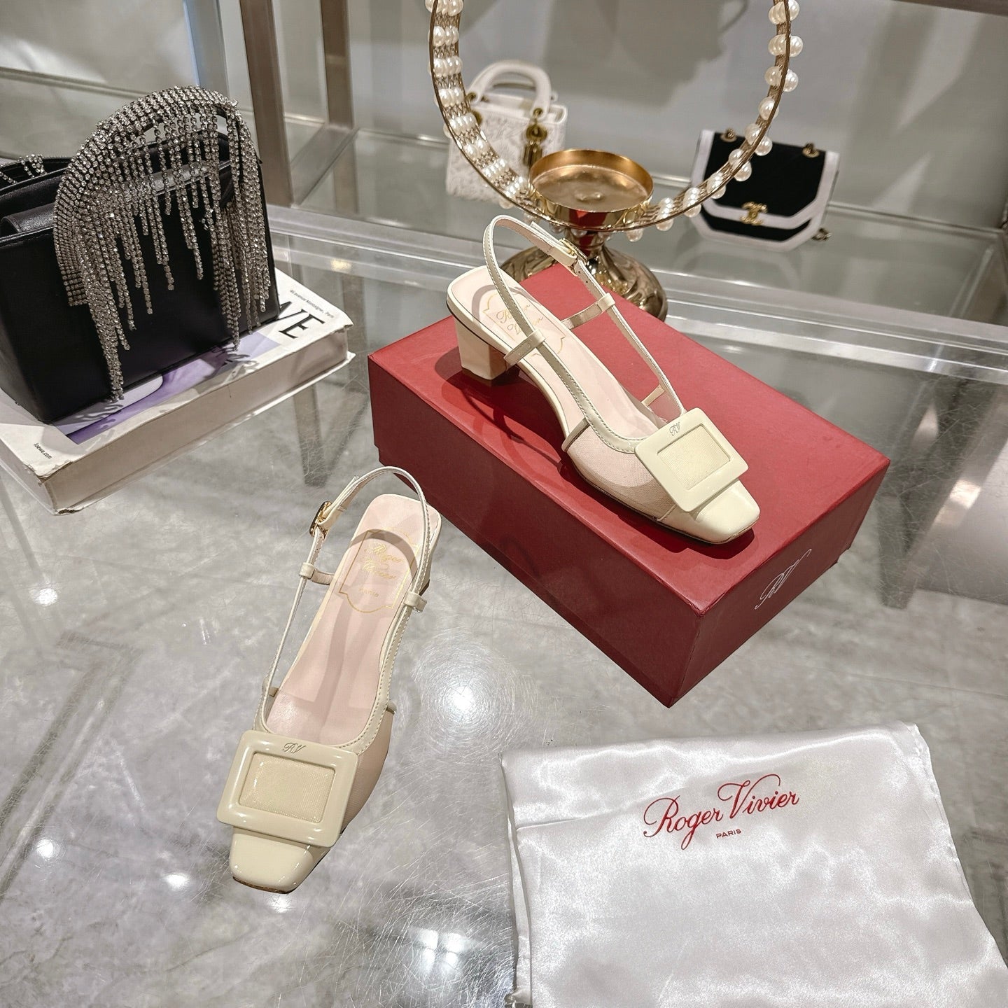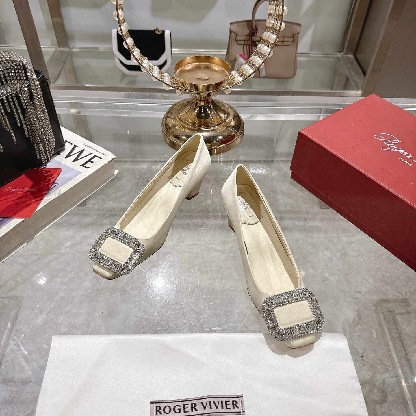 Viv Trompette Thick Heel Pumps White Cowhide Leather 283048