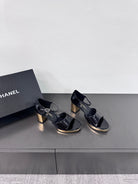 BLOCK HEEL SANDALS BLACK SHEEPSKIN