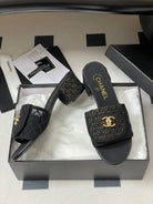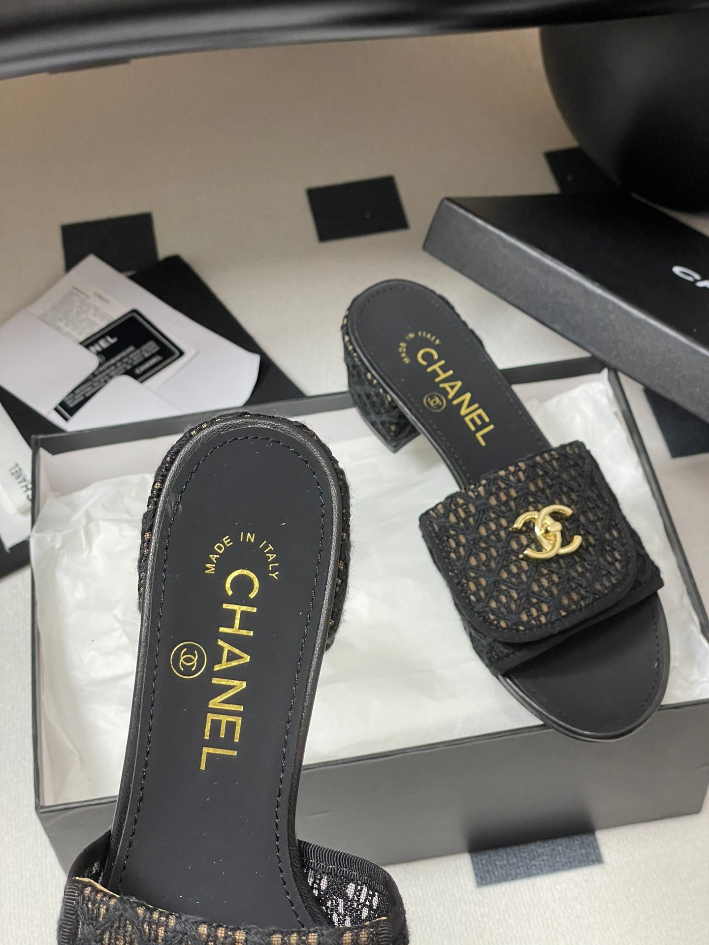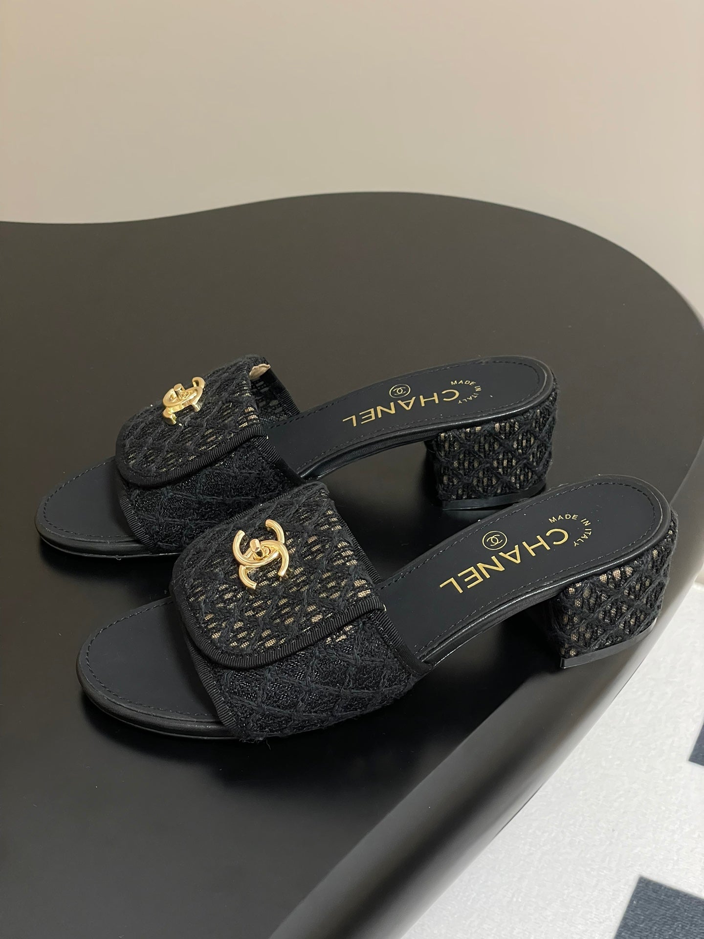 CC 25S Buckle Bag Mule Sandal 50mm Black Lace Fabric and Sheepskin 247593