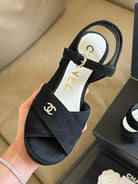 CC CLASSIC WEDGE SANDALS IN BLACK LAMBSKIN SUEDE
