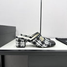 CC HIGH MULE IN WHITE MIX BLACK WOOL TWEED AND CALFSKIN