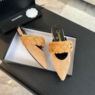 CC MULE IN SEPIA BEIGE SMOOTH FLEECE WITH GOLD HARDWARE