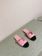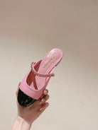 cc mule leather chain pink calfskin black patent calfskin