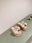 CC SLIPPERS WITH SILK BOW IN BEIGE ALMOND COWHIDE