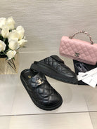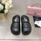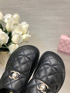 CC TURNLOCK FLAP MULES BLACK LAMBSKIN
