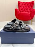 CD Aqua Sandals with Straps Beige Black Oblique Jacquard Frabic 476661