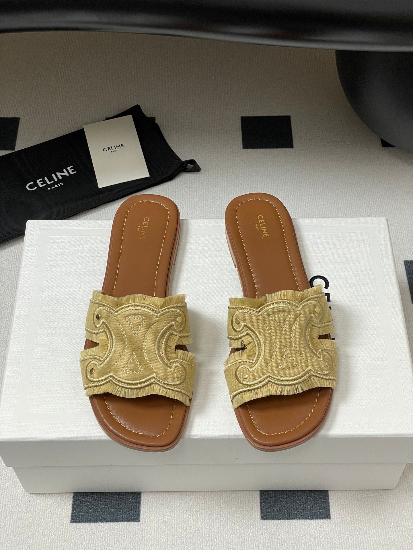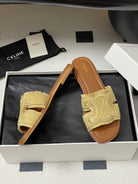 CL Marina Fringed Flat Mule In Caramel Denim 319735