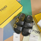 FENDI BAGUETTE DAD SANDALS IN BLACK EMBOSSED CALFSKIN WITH GOLD HARDWARE