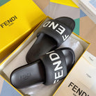 FENDI ROMA SLIDE IN BLACK GRAINED CALFSKIN WITH WHITE LOGO