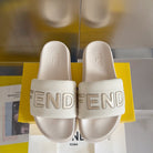 FENDI ROMA SLIDE IN WHITE GRAINED CALFSKIN WITH LOGO