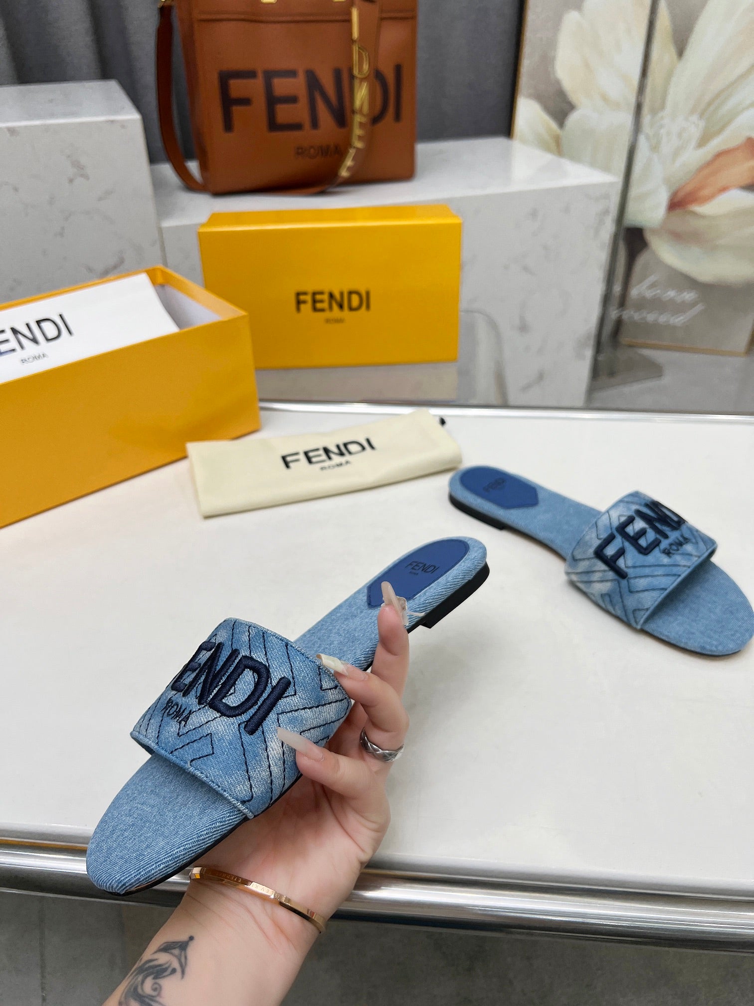 FF 5 BLUE DENIM CANVAS SLIDE
