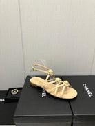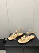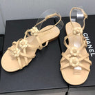 FLORAL FLAT SANDAL IN SAND YELLOW LAMBSKIN