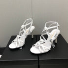 FLORAL HIGH HEEL SANDAL IN WHITE LAMBSKIN