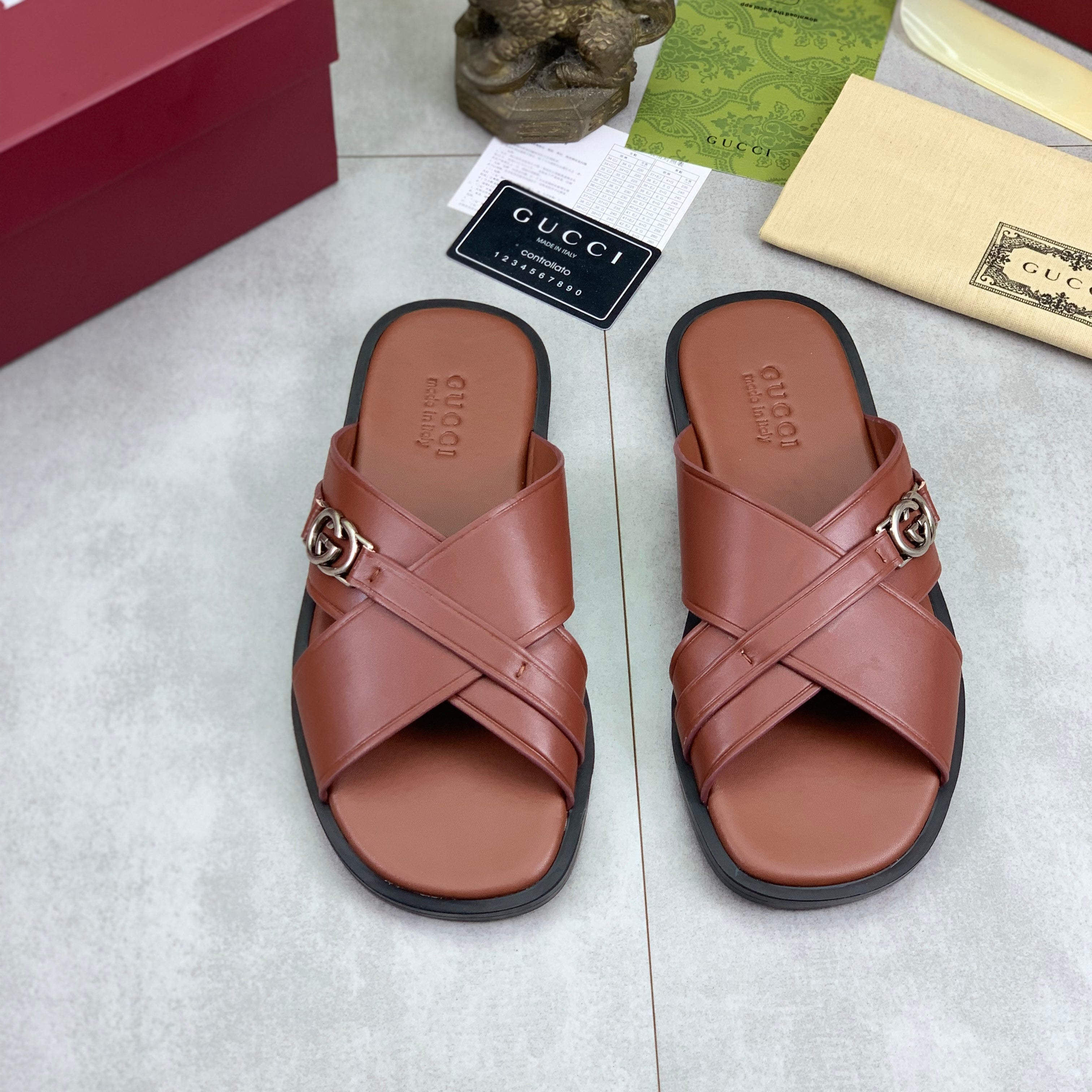 GG Men's 25 Sandals Slide Brown Cowhide 738473