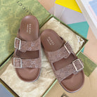 GG Men's Sandals Slide Brown Embossed Suede 595716