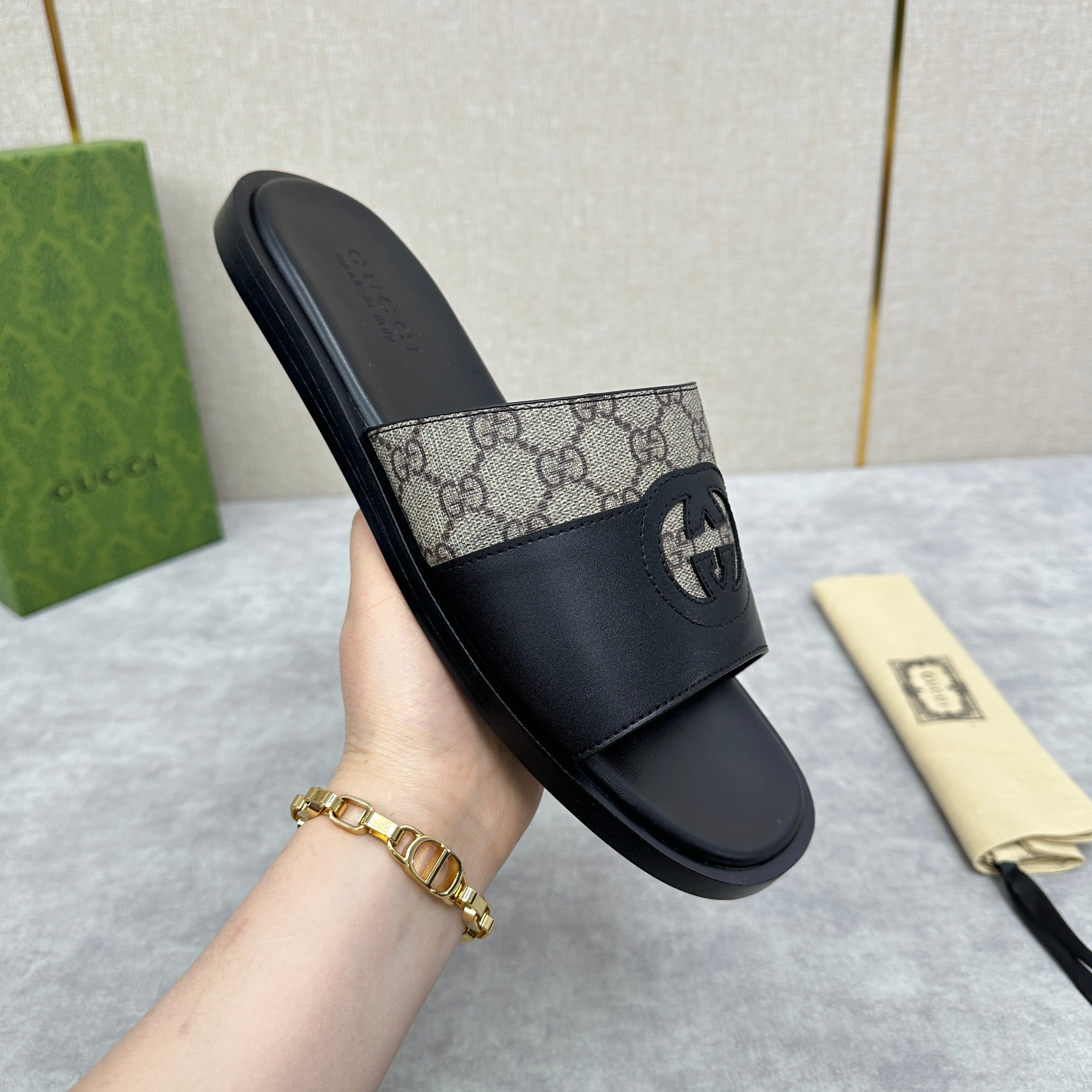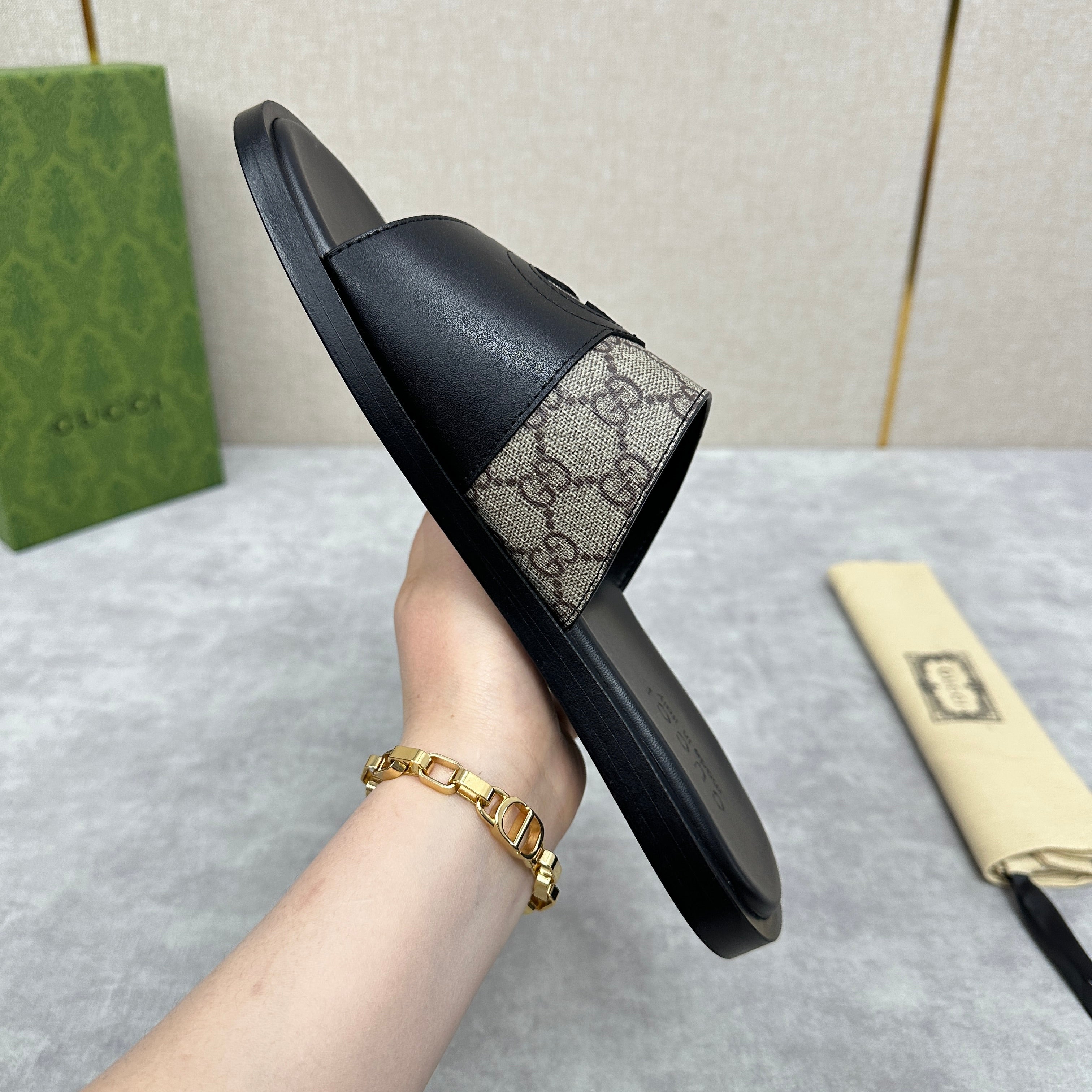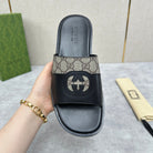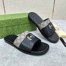 GG Men's Slide Black Brown Canvas Cowhide 542946
