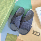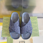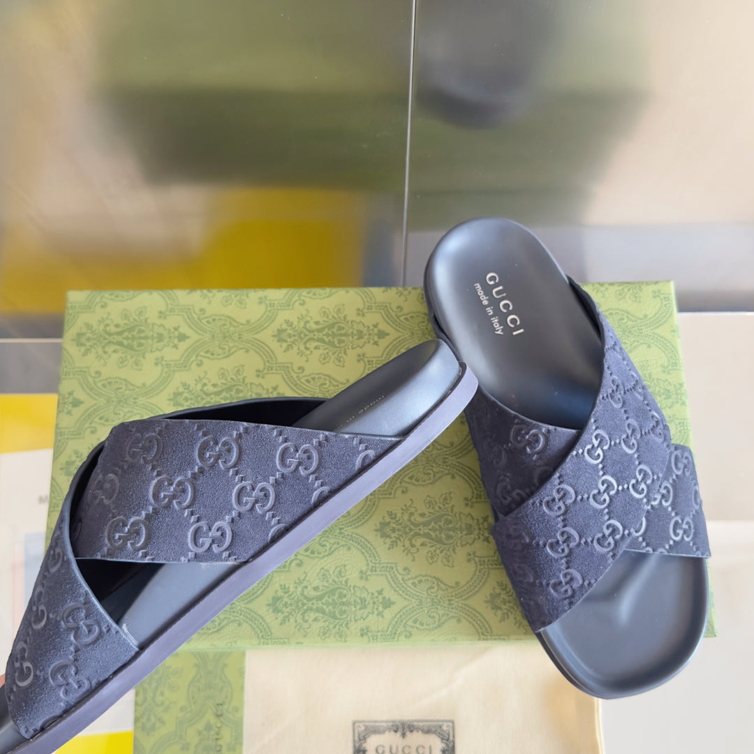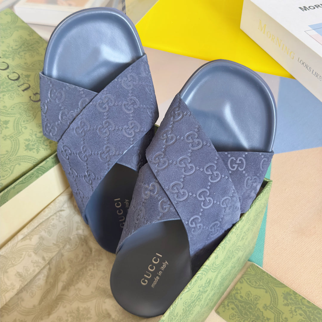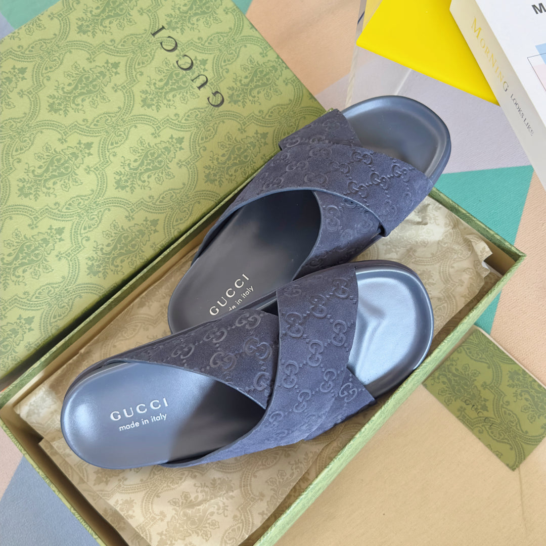 GG Men's Slide Navy Blue Embossed Suede 595712