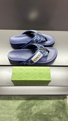 GG Men's Thong Sandals Blue Polyester Leather 547248