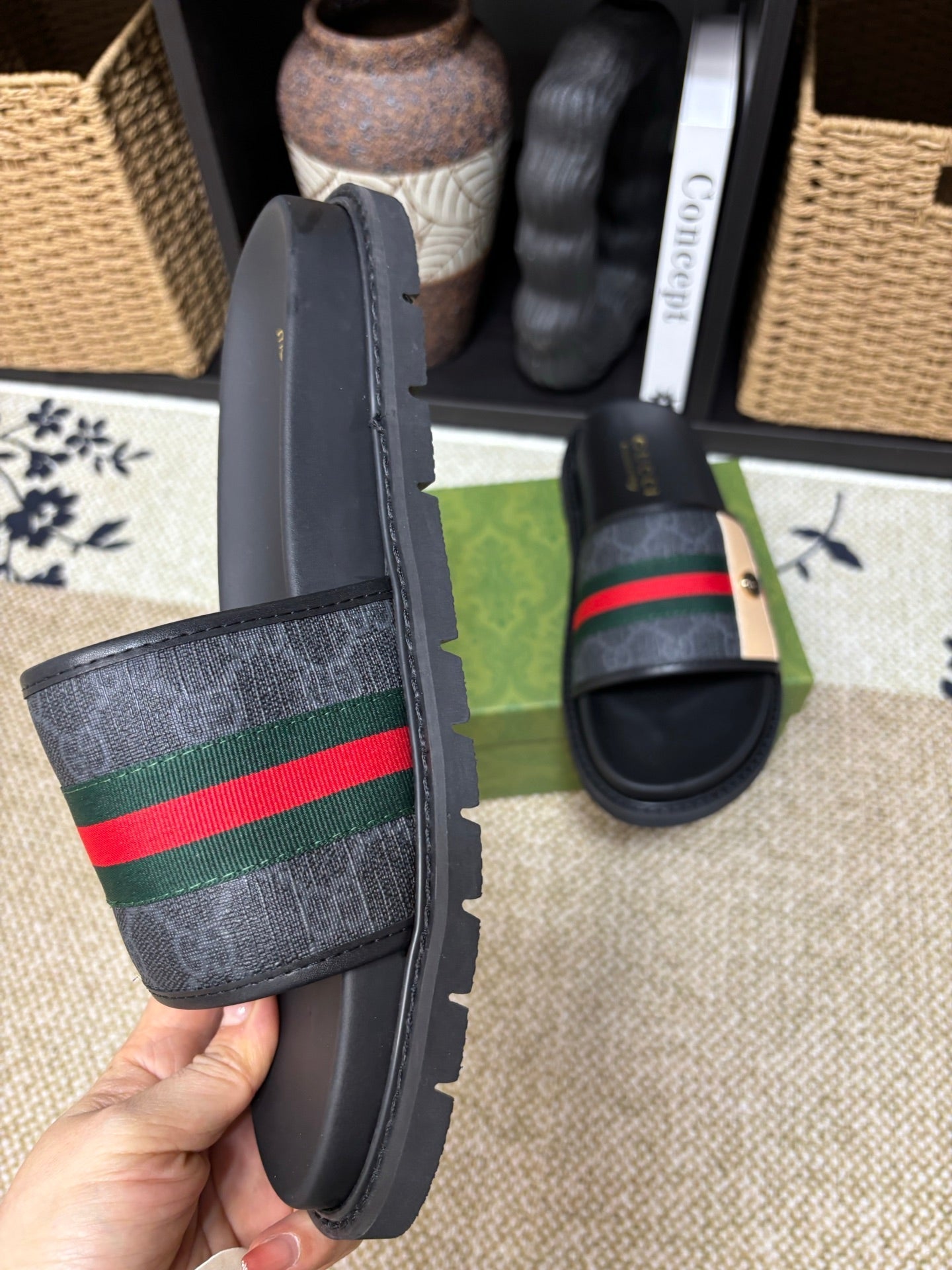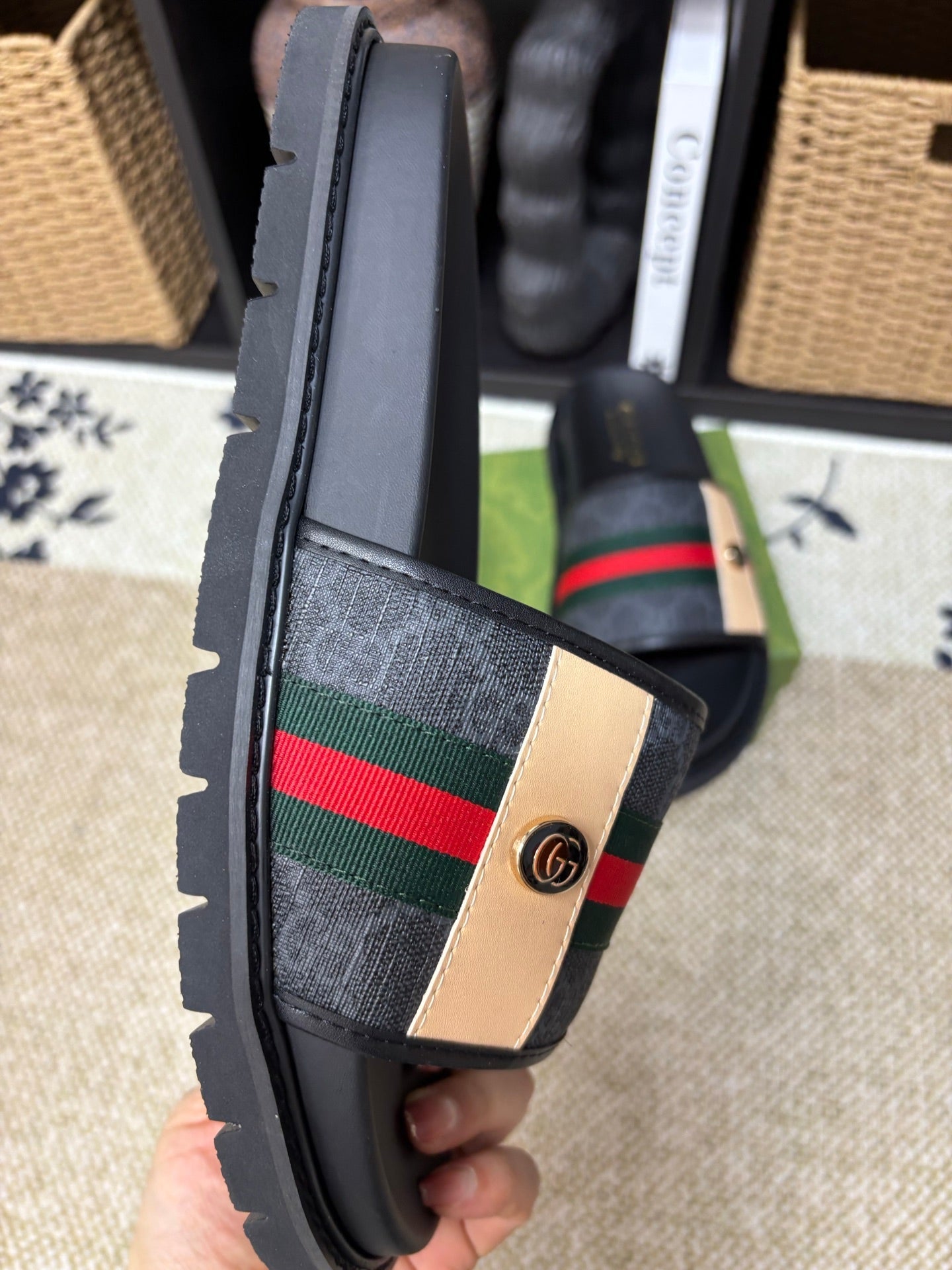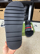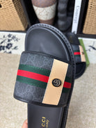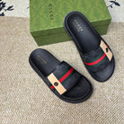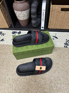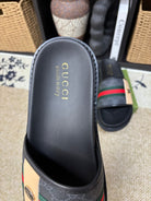 GG Men's Web Slide Black Canvas Cowhide 595542