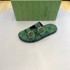 GG x Adidas Men's Sandals Slide Green Canvas 558906