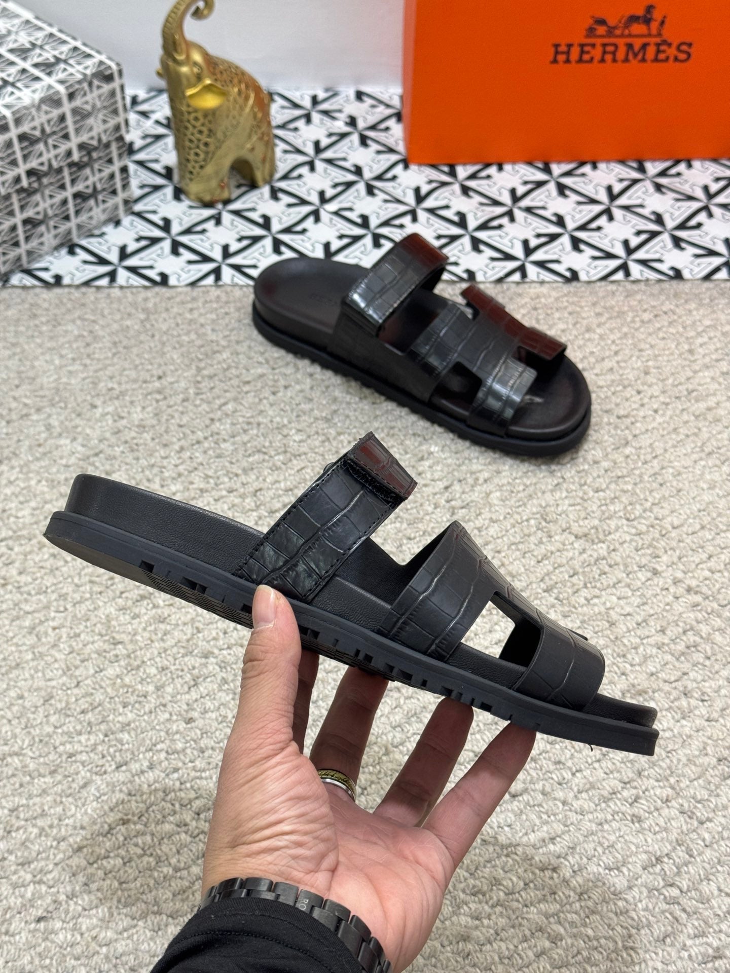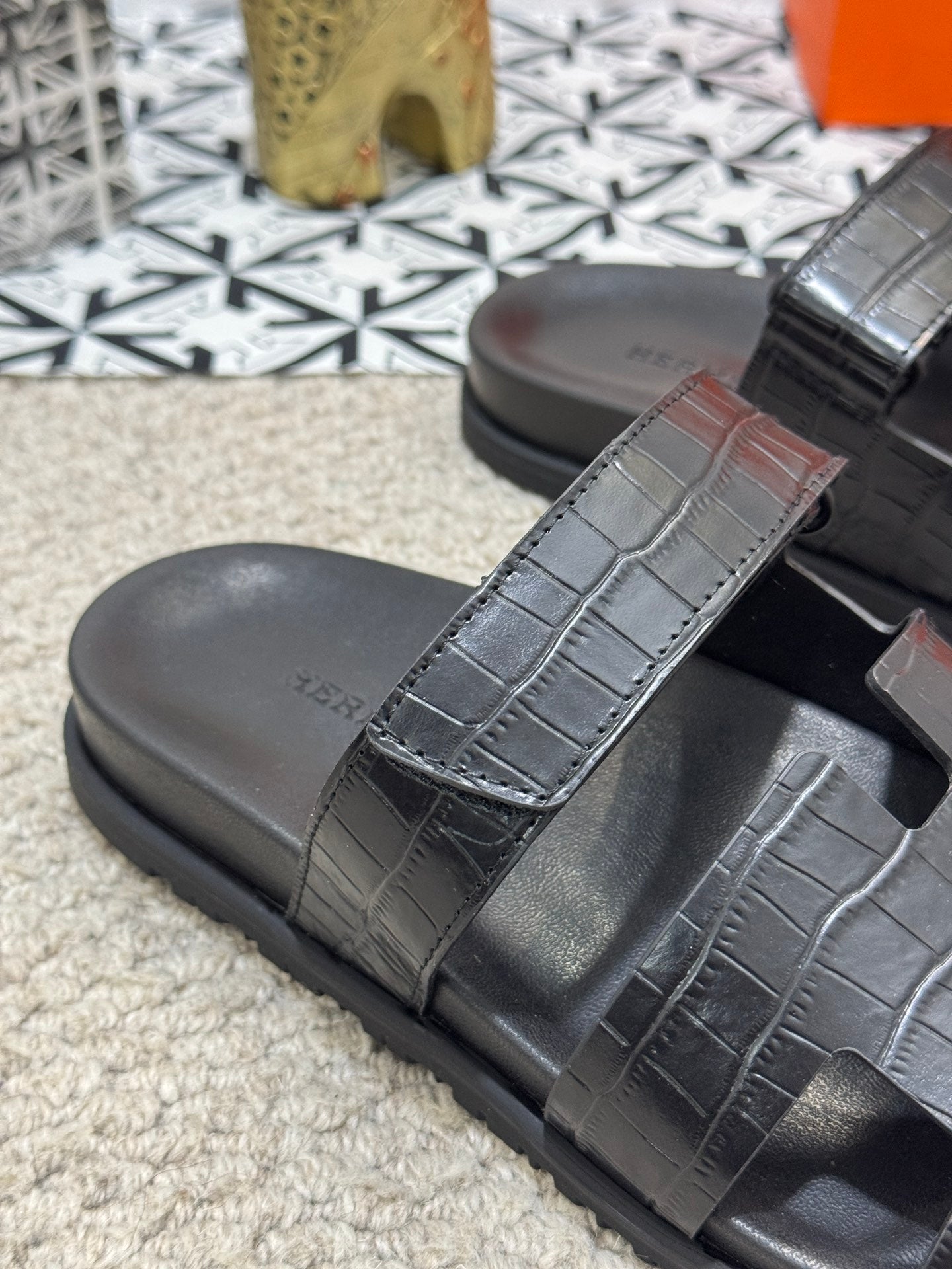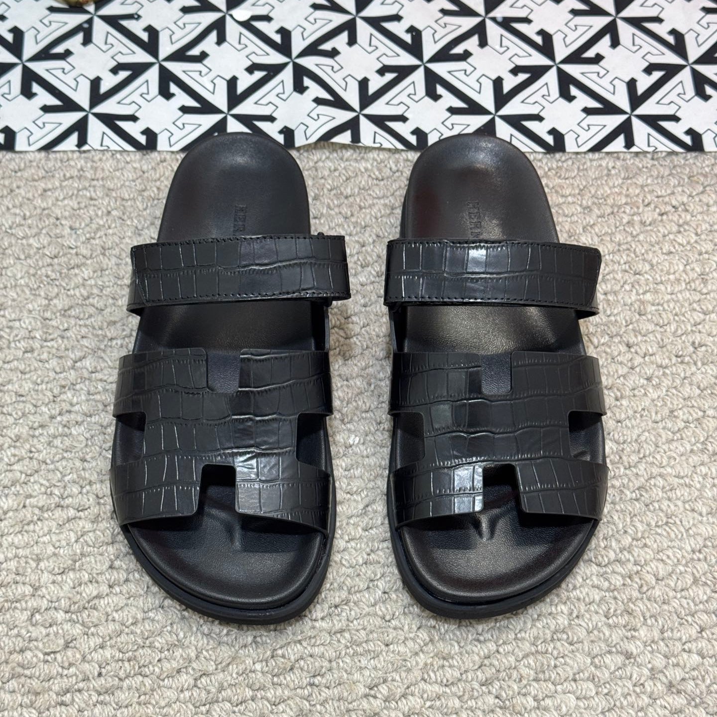 HM Men's Chypre Slide Black Cowhide 542930