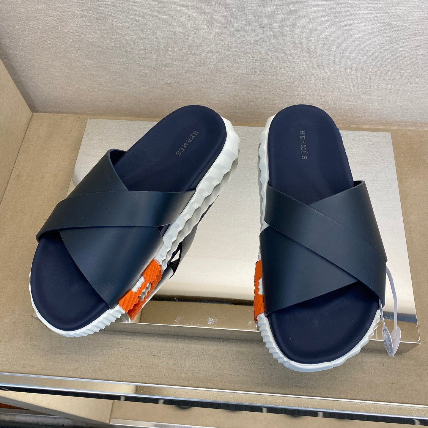 HM Men's Infra Slide Navy Blue Calfskin 602611