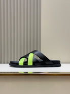 HM Men's Kazimir Slide Black Green Calfskin 562770