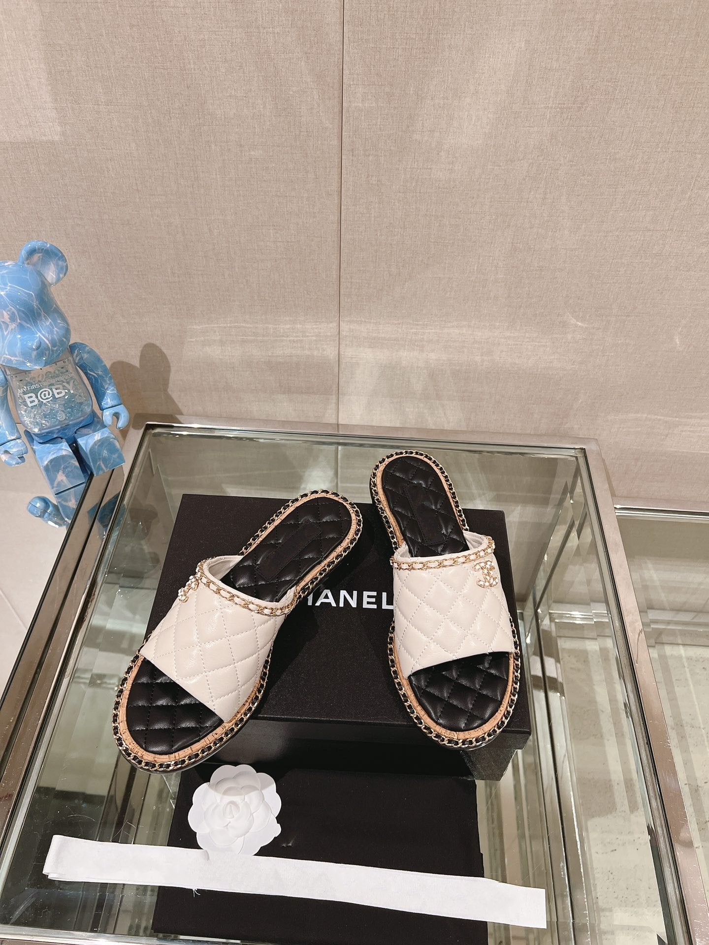 mule sandal 30 white black quilted lambskin