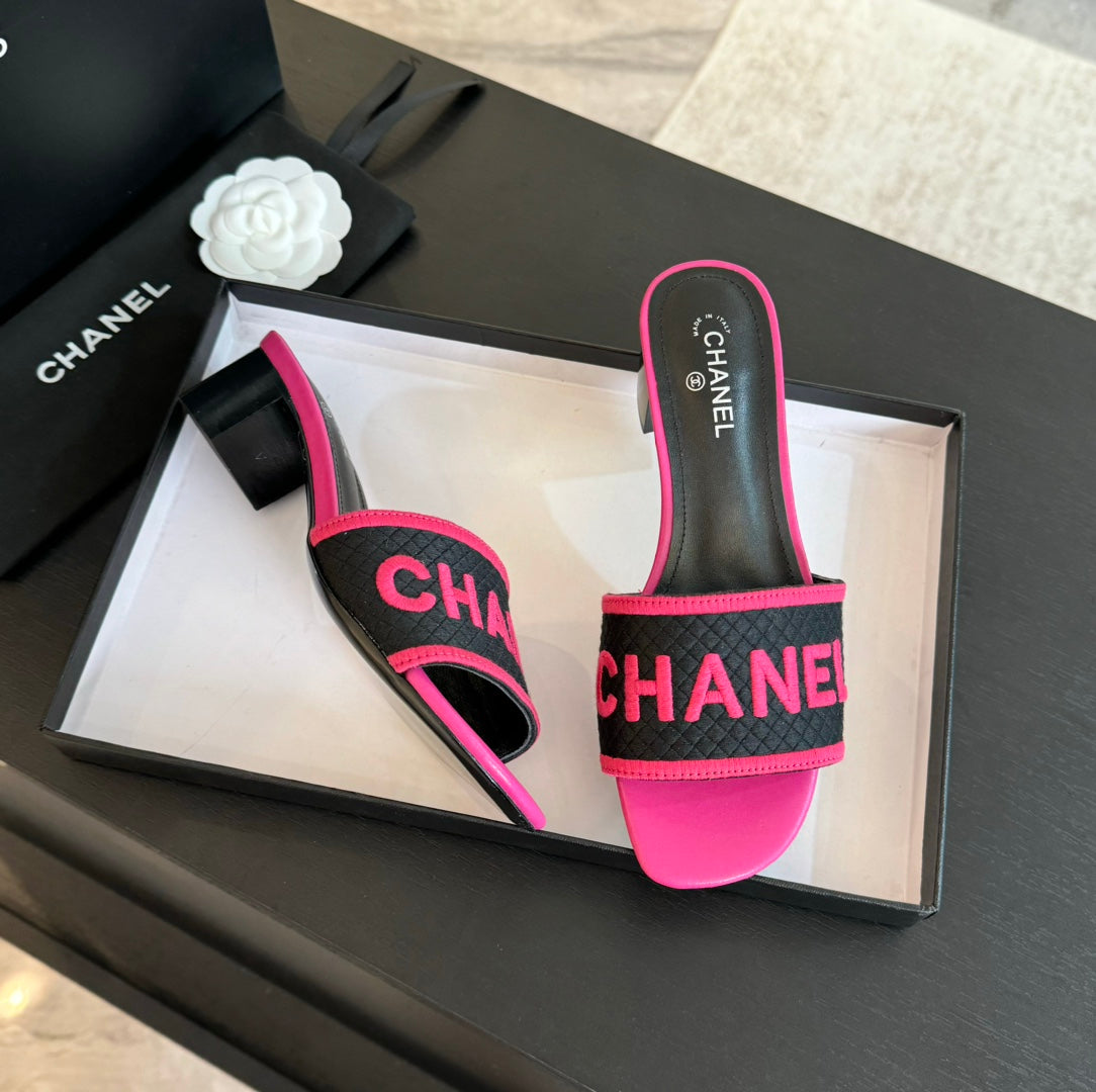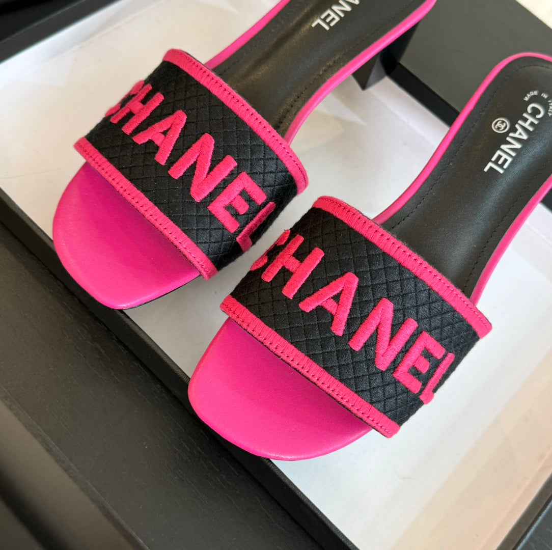 mule sandal 45 black pink fabric embroidery
