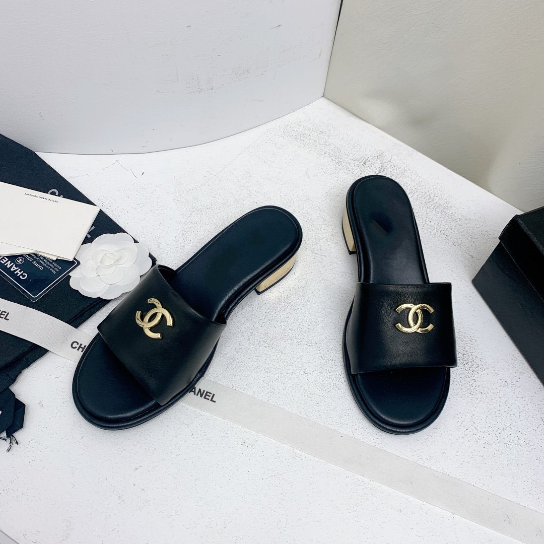 mule sandal 50 black gold lambskin