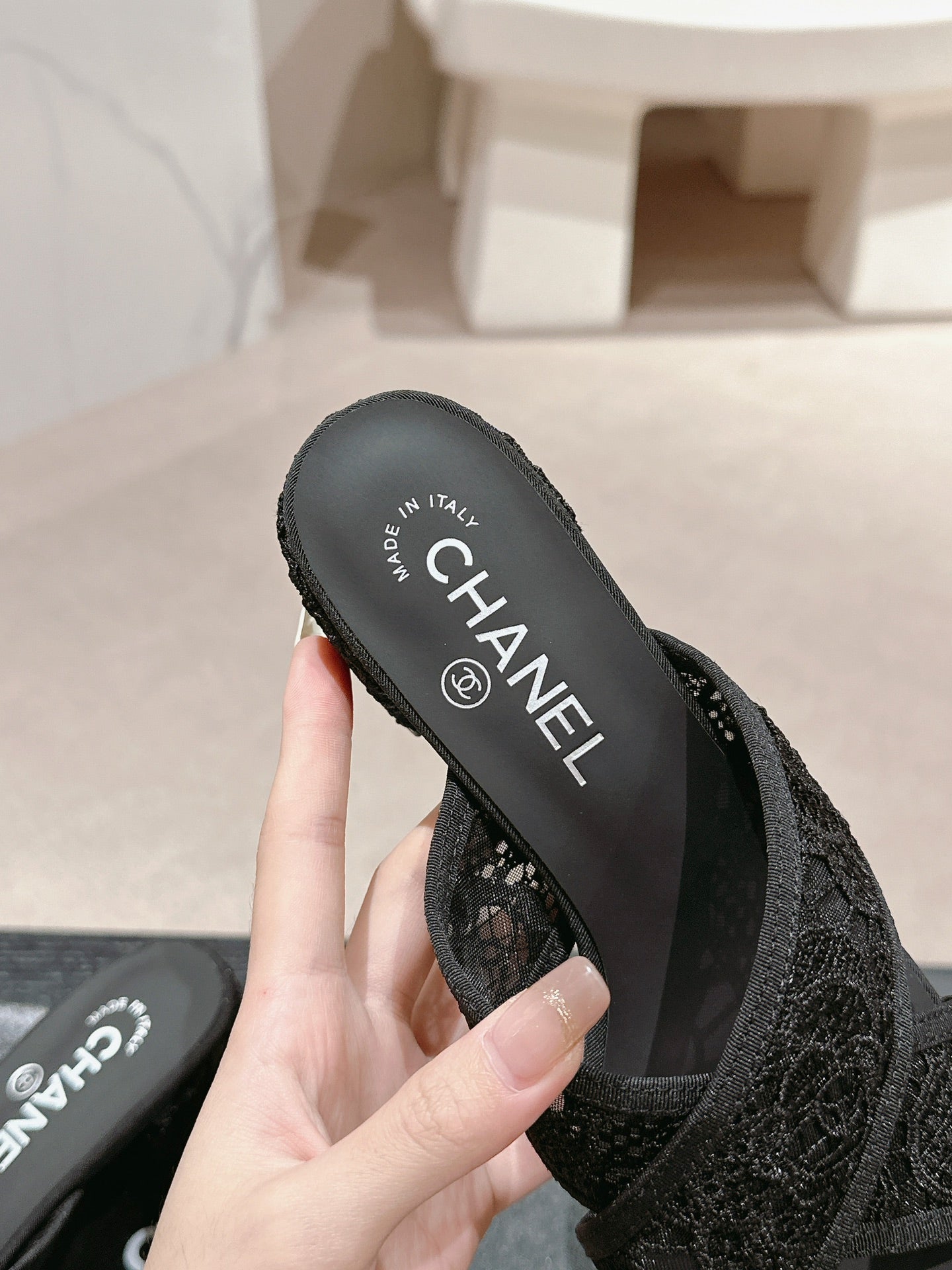mule sandal 60 cross black lace fabric