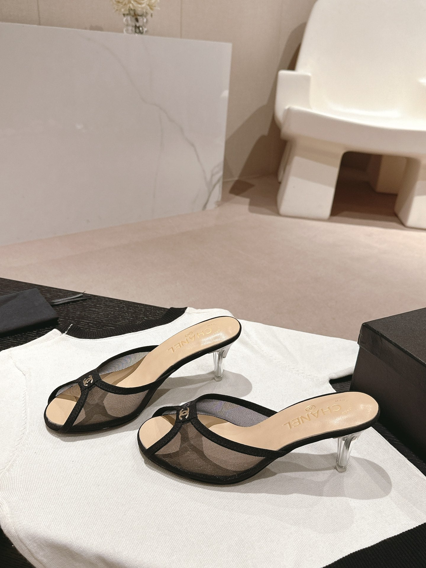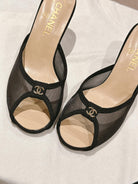 mule sandal 75 black fabric beige calfskin