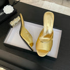 T-STRAP PEARL HEEL 85 MM SANDALS IN GOLD LAMBSKIN MULE
