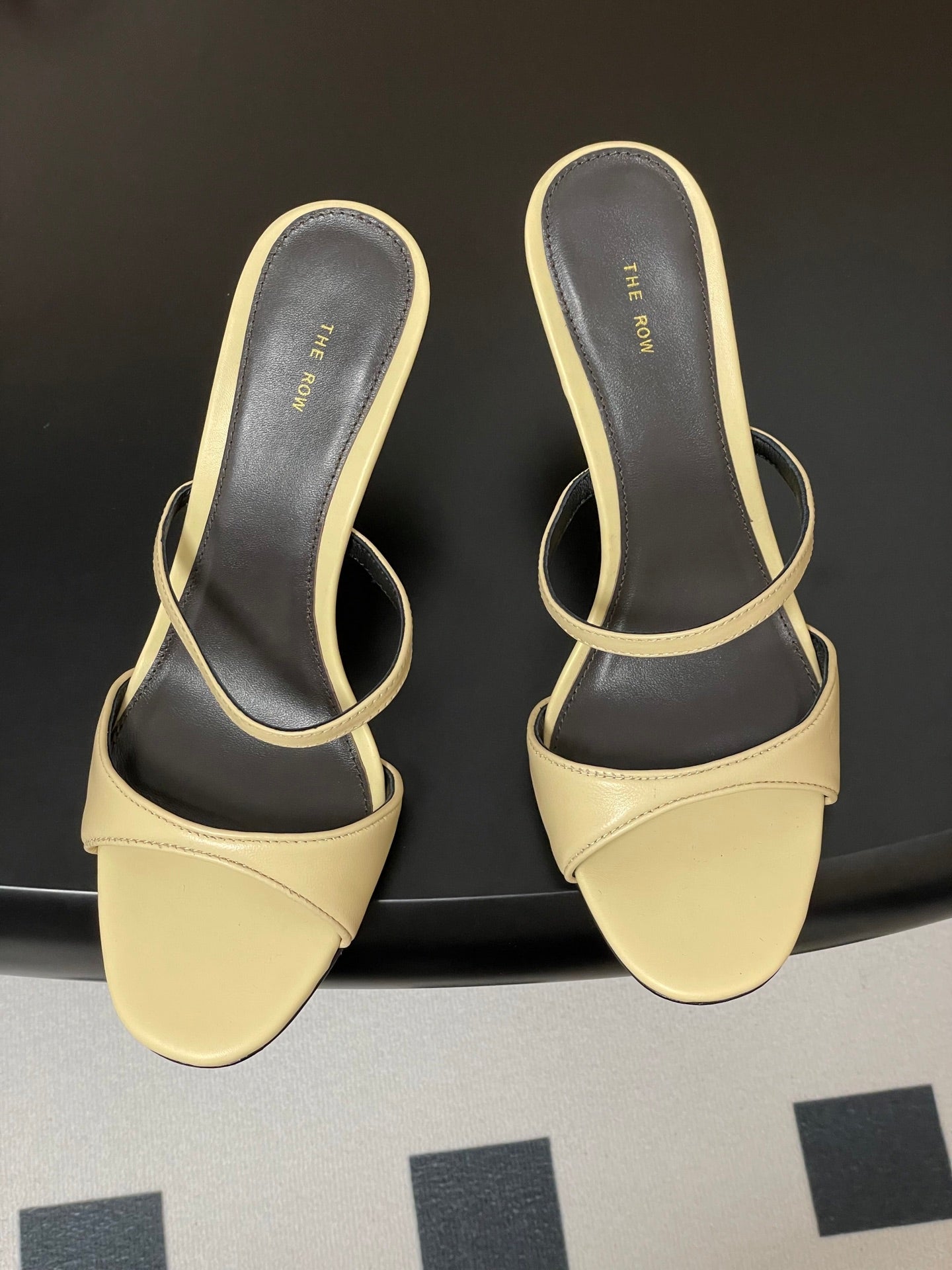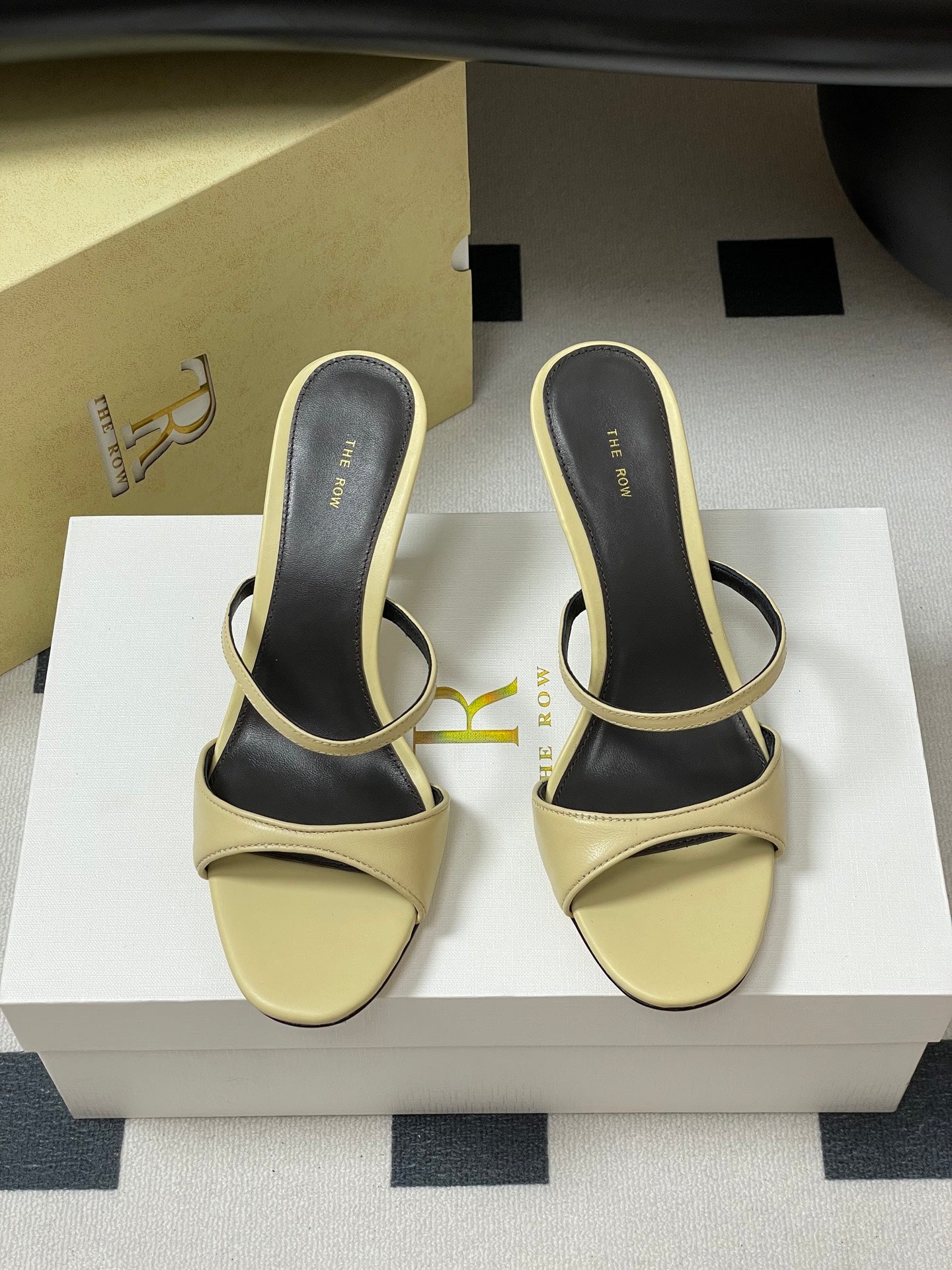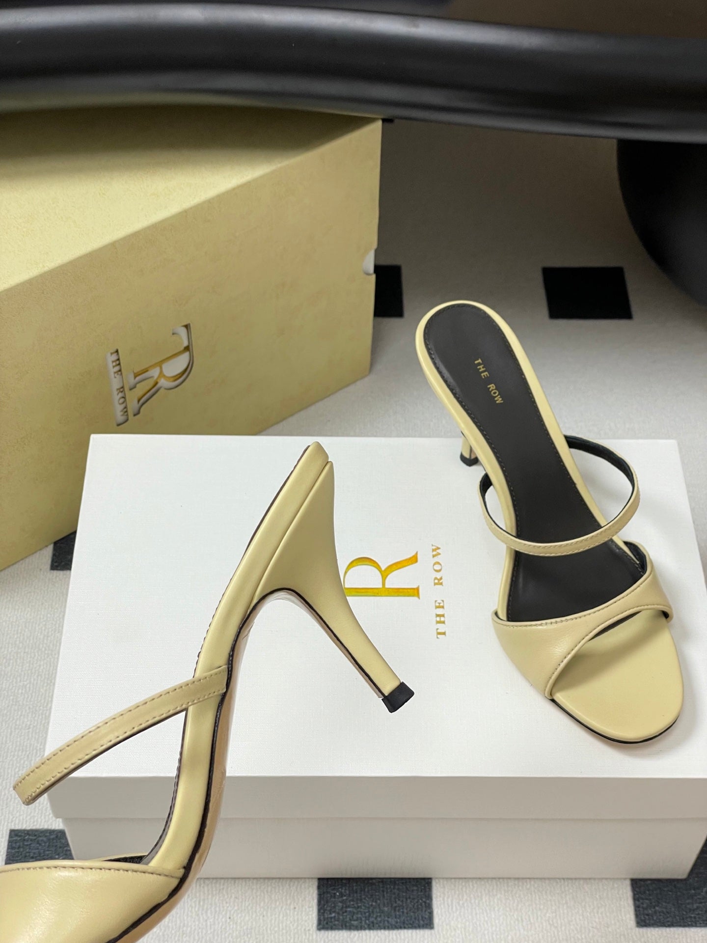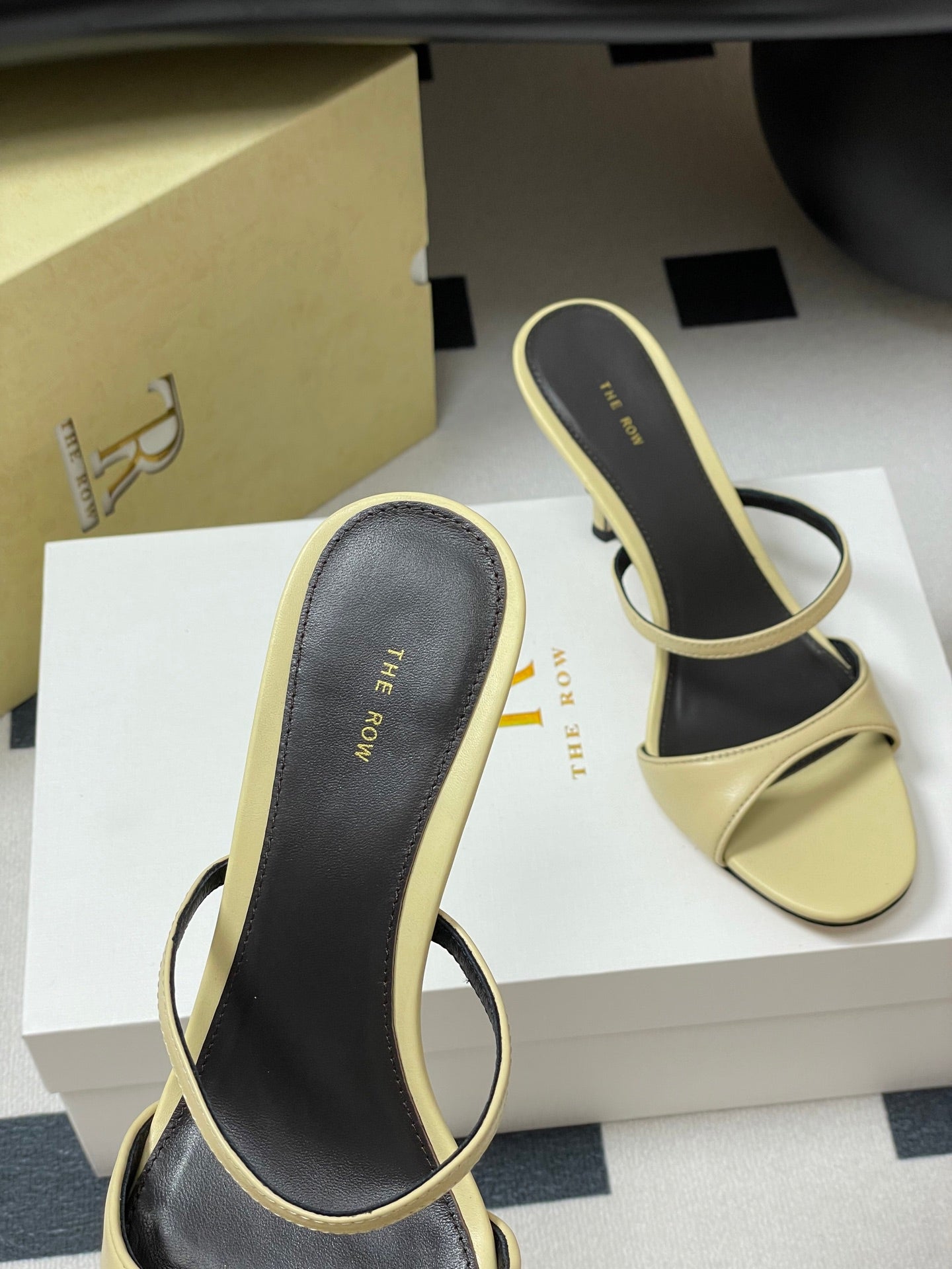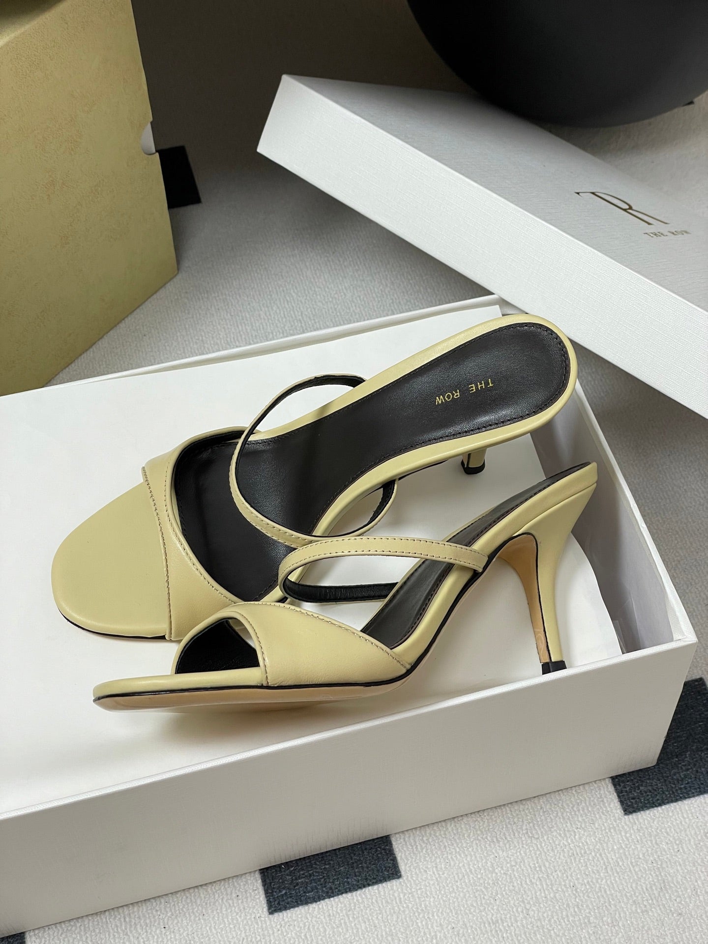 The Row 25S Strap High Heel Mule Sandals 85mm Beige Sheepskin 286207