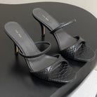 The Row 25S Strap High Heel Mule Sandals 85mm Black Snake Pattern Cowhide 286205